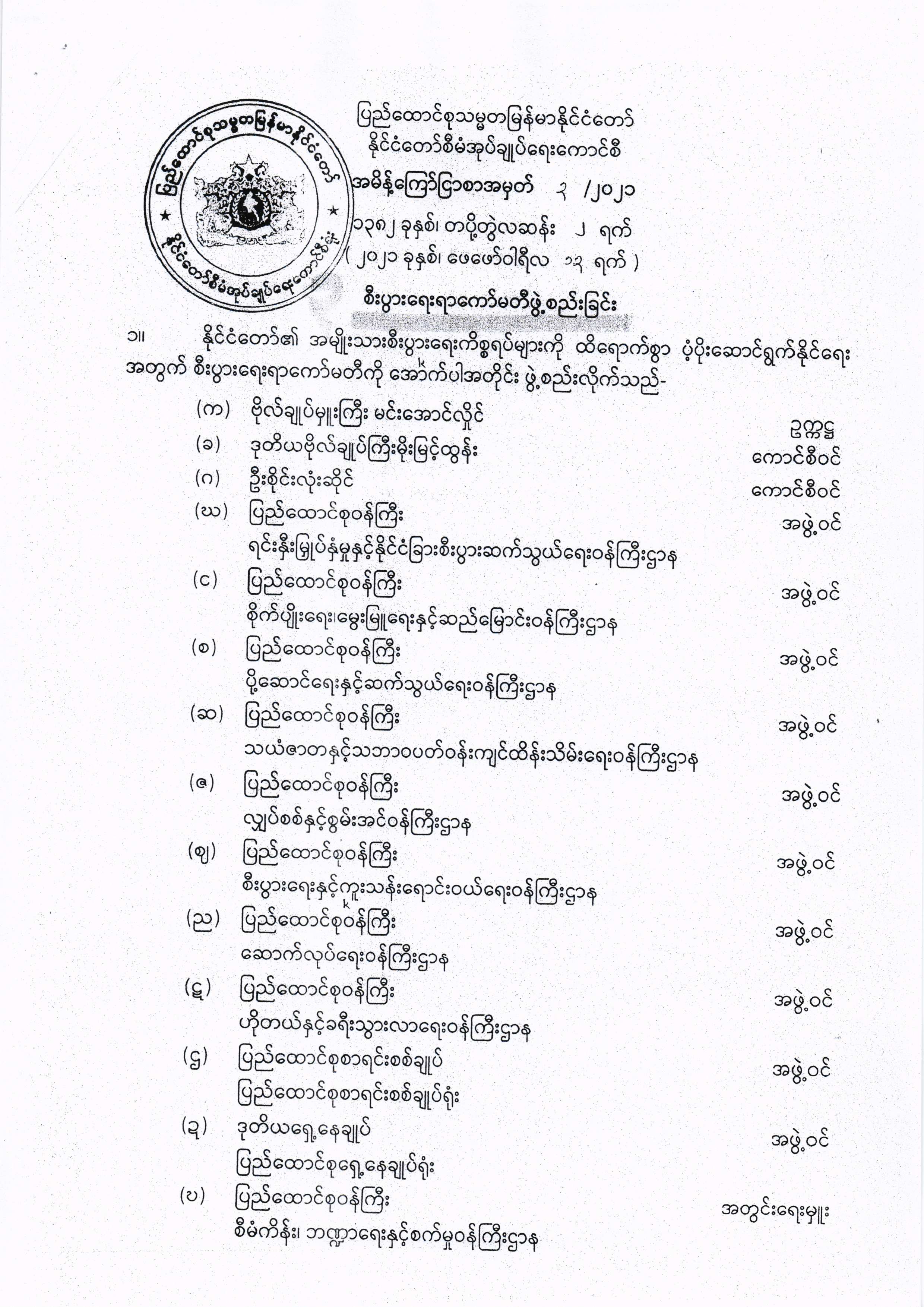 ဝန်ကြီးဌာန ကြေညာချက်များ