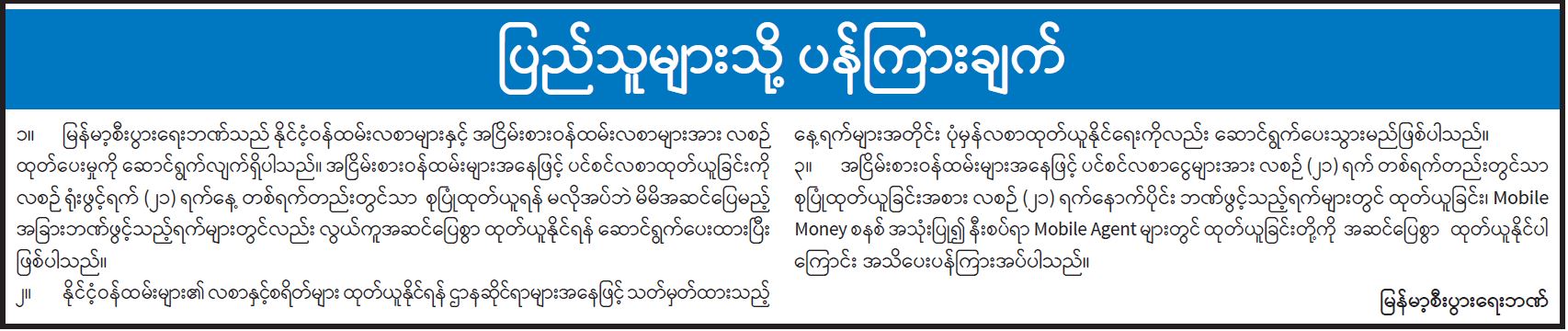 ဝန်ကြီးဌာန ကြေညာချက်များ