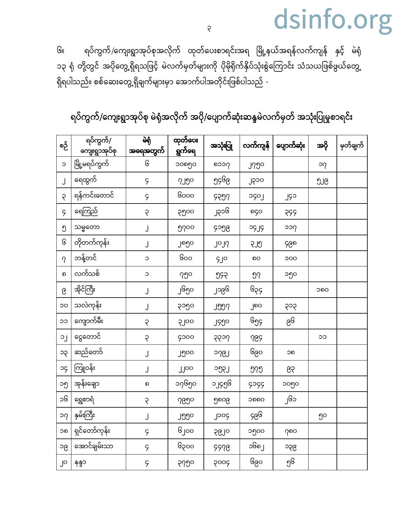 ဦးစီးဌာနနှင့် လုပ်ငန်းများ၏ ကြေညာချက်များ