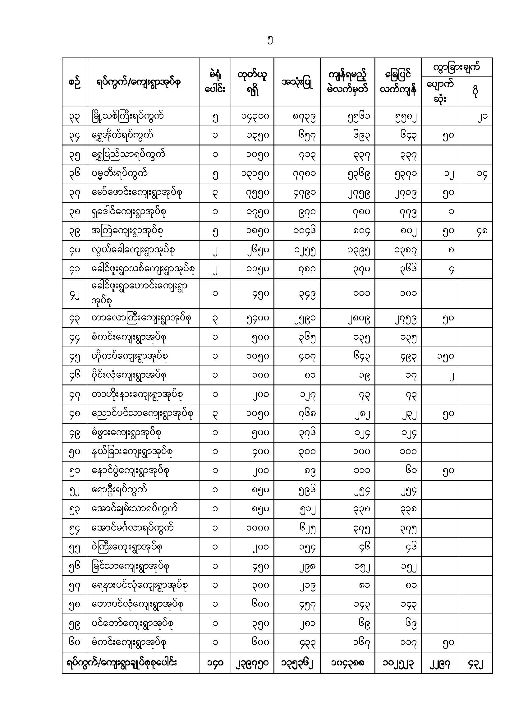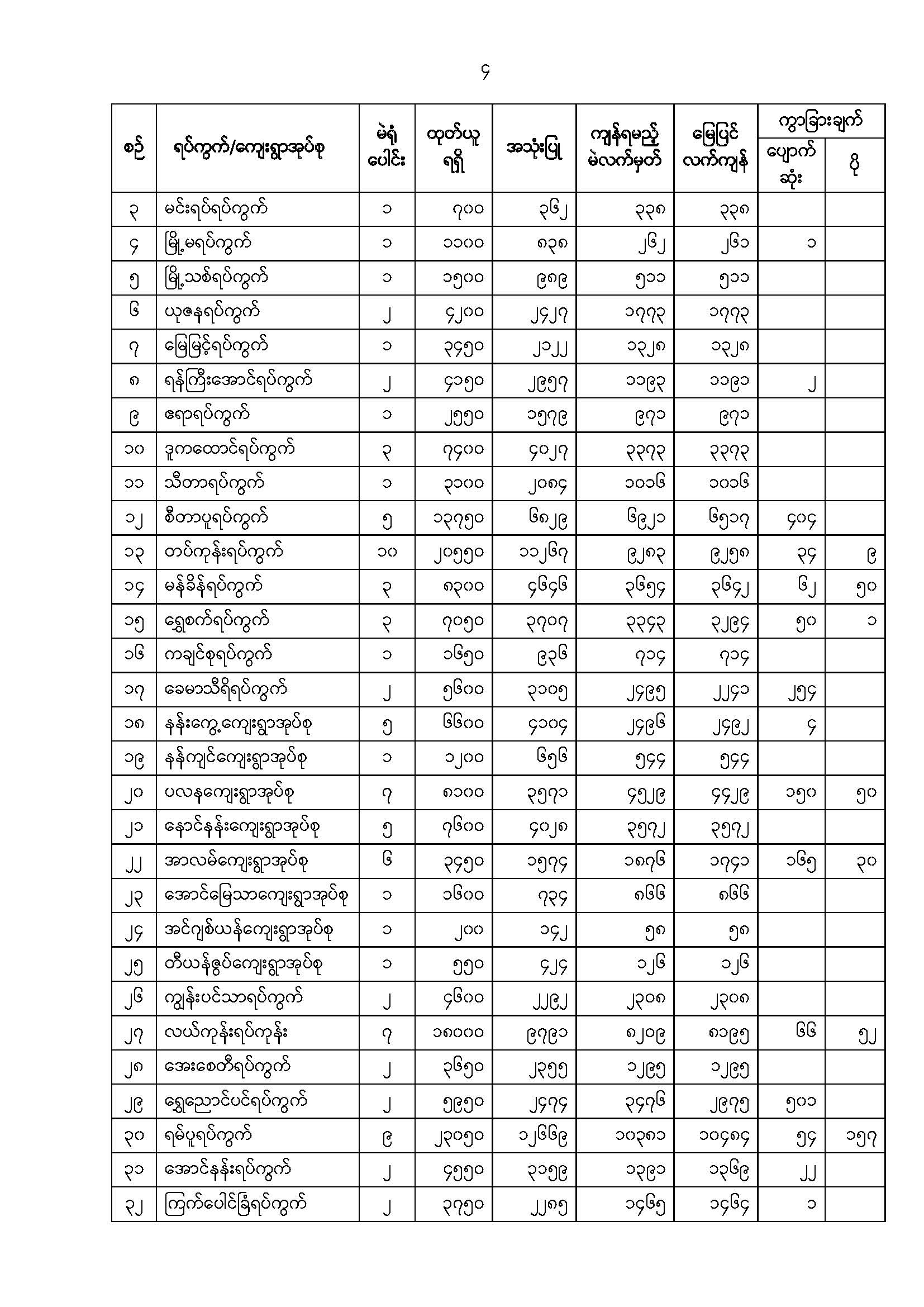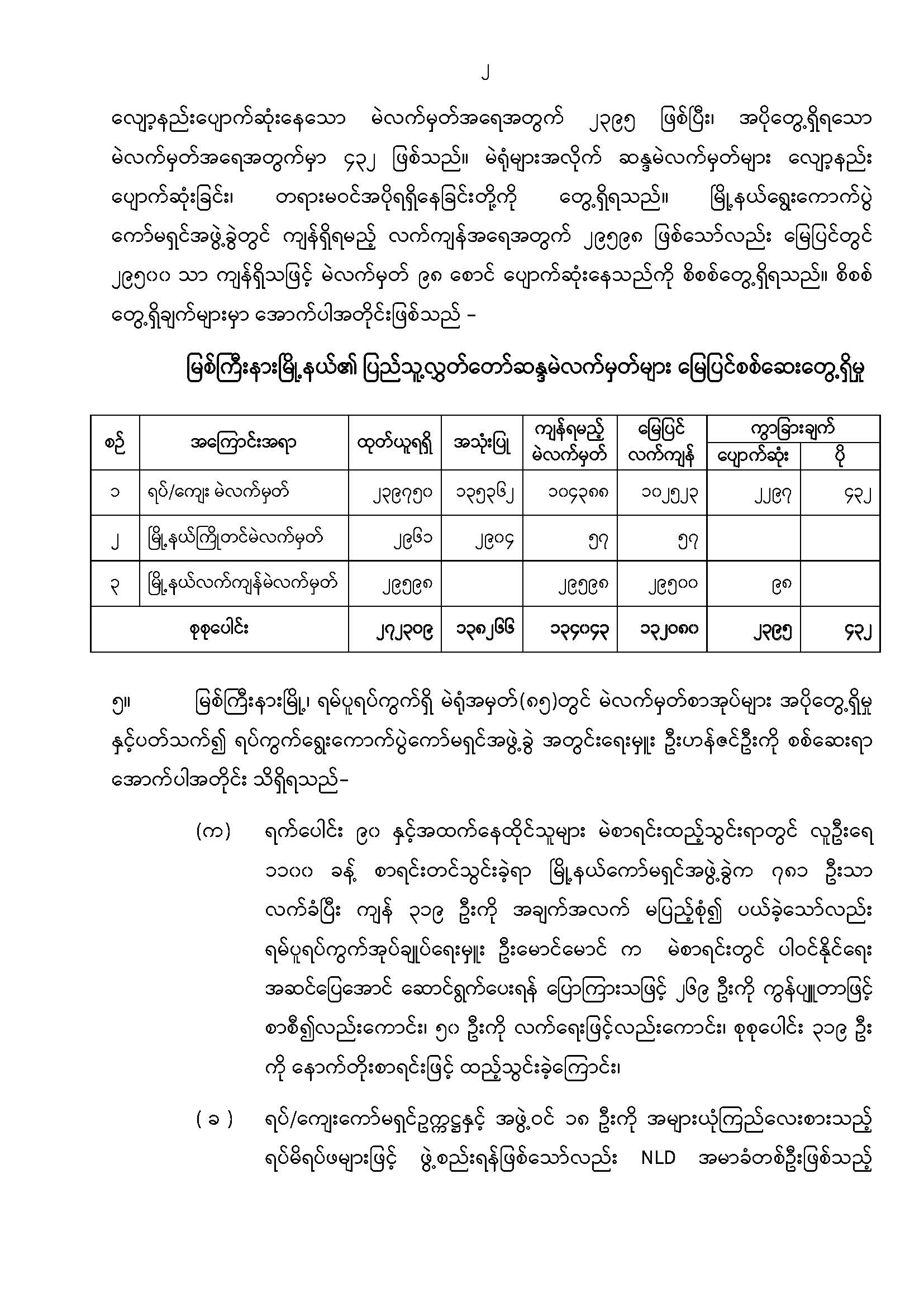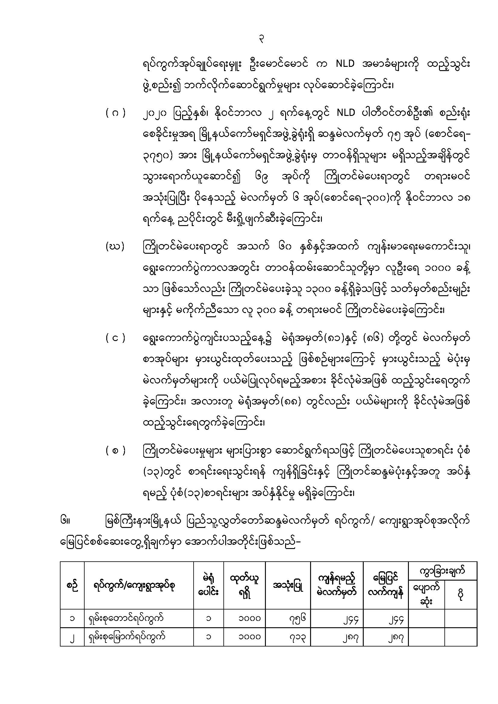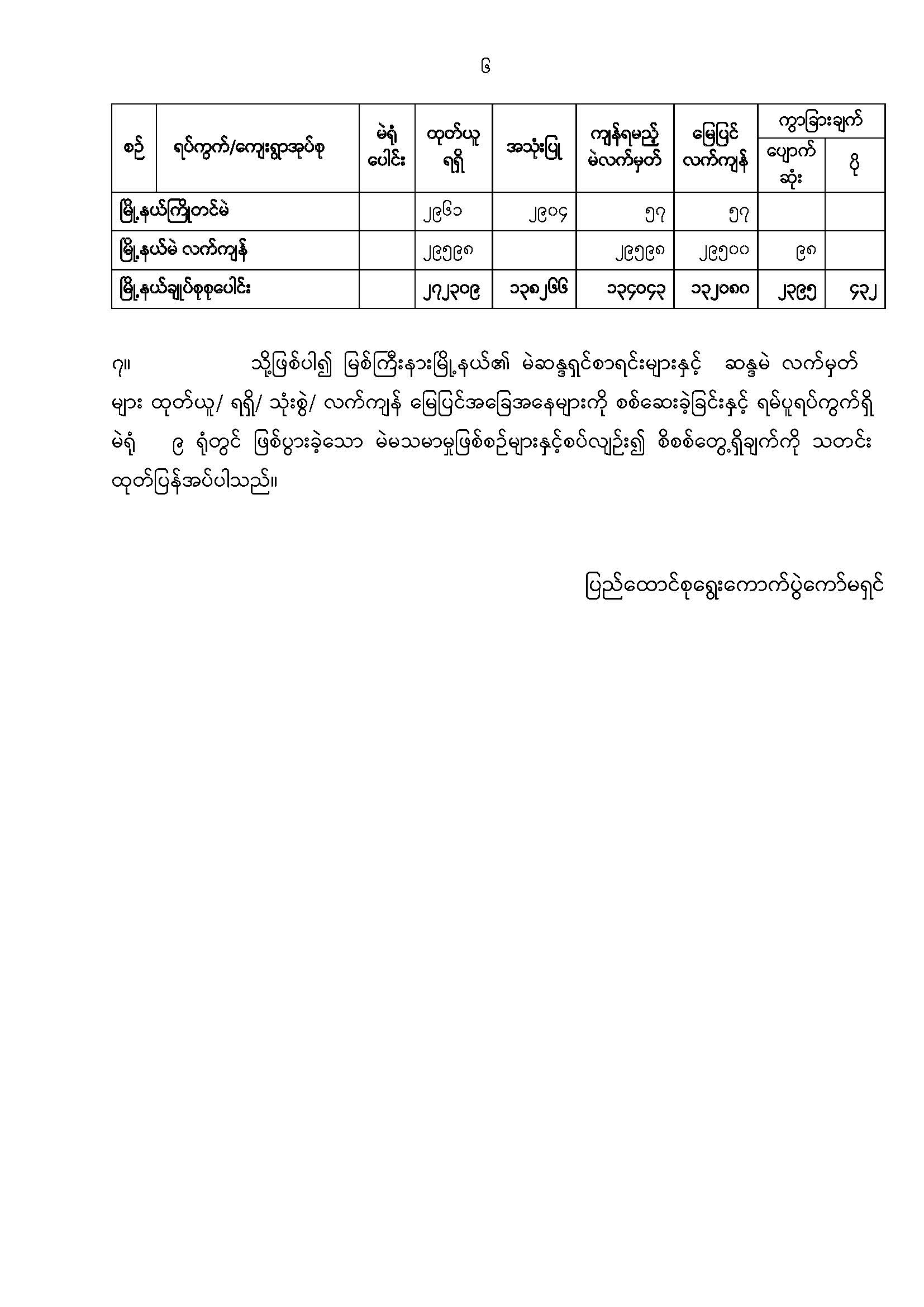 ဦးစီးဌာနနှင့် လုပ်ငန်းများ၏ ကြေညာချက်များ
