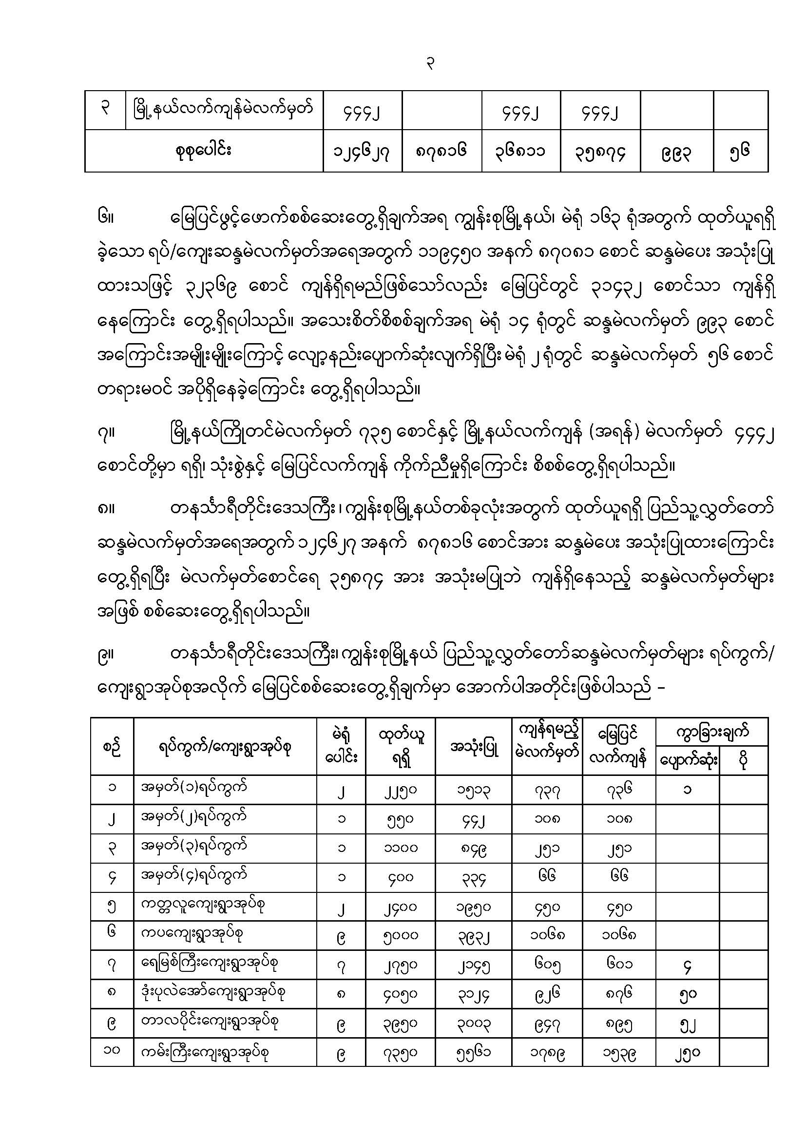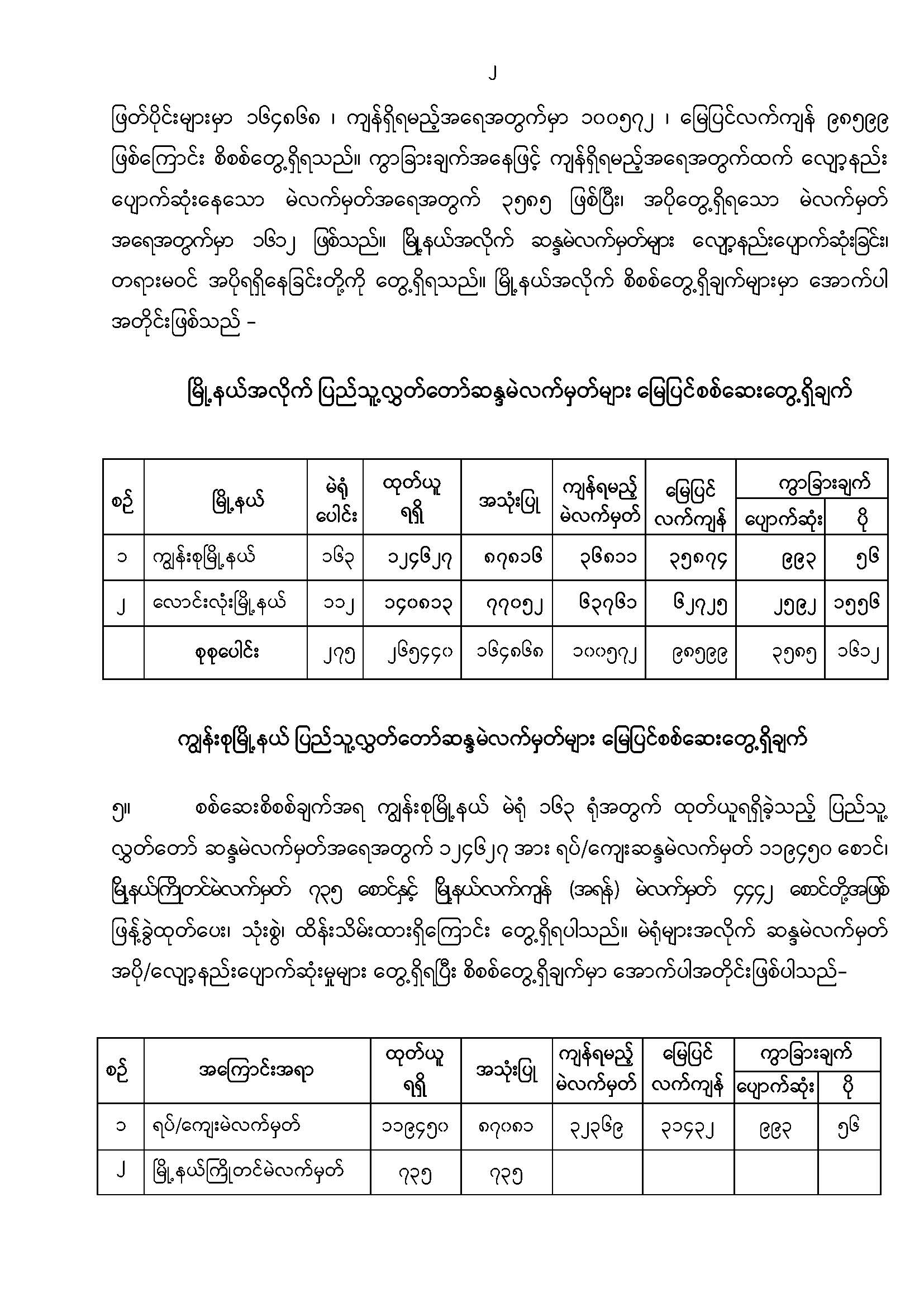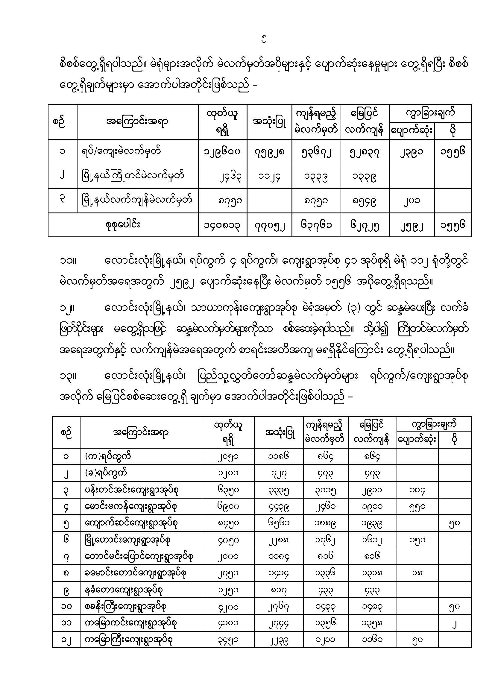ဦးစီးဌာနနှင့် လုပ်ငန်းများ၏ ကြေညာချက်များ