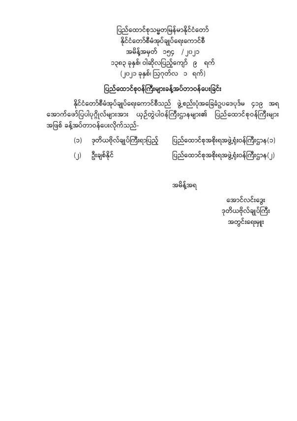 ဝန်ကြီးဌာန ကြေညာချက်များ