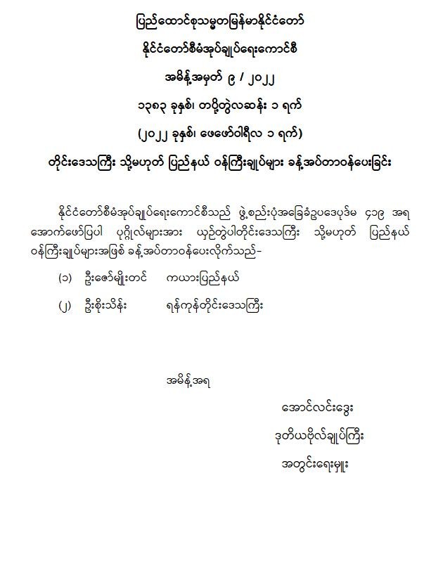 အမိန့်အမှတ် ၉ / ၂၀၂၂