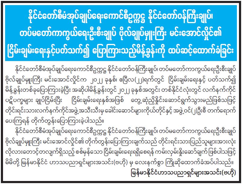 နိုင်ငံတော်စီမံအုပ်ချုပ်ရေးကောင်စီဥက္ကဋ္ဌ နိုင်ငံတော်ဝန်ကြီးချုပ်၊ တပ်မတော်ကာကွယ်ရေး ဦးစီးချုပ် ဗိုလ်ချုပ်မှူးကြီး မင်းအောင်လှိုင်၏ ငြိမ်းချမ်းရေးနှင့်ပတ်သက်၍ ပြောကြားချက်များအပေါ် မြန်မာနိုင်ငံ ဟာသပညာရှင်များအသင်း(ဗဟို)က လေးနက်စွာကြိုဆိုထောက်ခံ