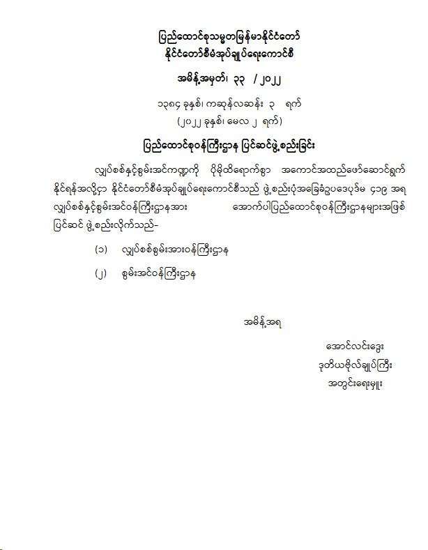 ဝန်ကြီးဌာန ကြေညာချက်များ