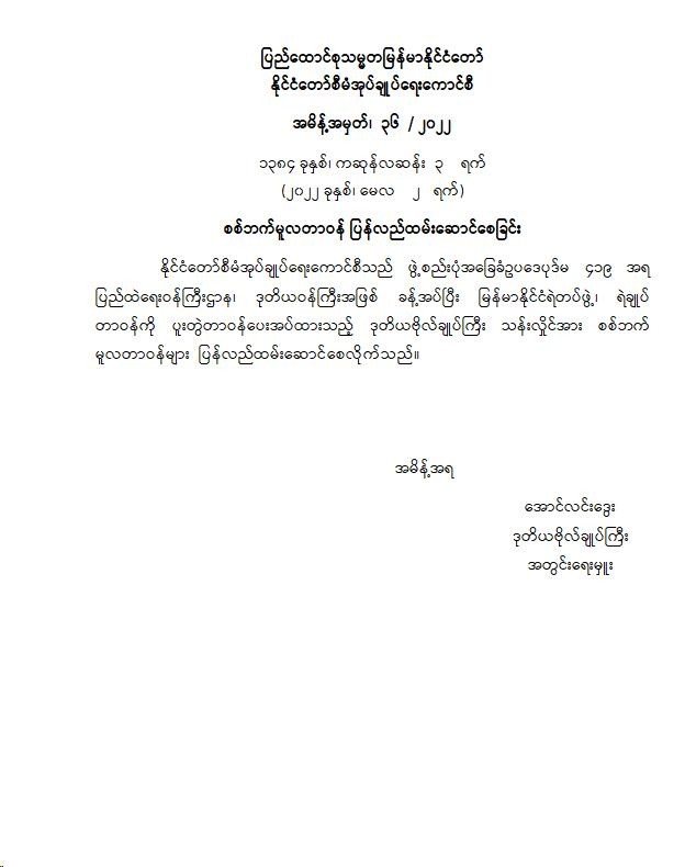 ဝန်ကြီးဌာန ကြေညာချက်များ