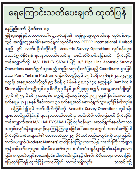 ရေကြောင်းသတိပေးချက် ထုတ်ပြန်