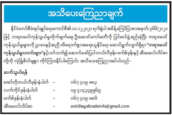 ဝန်ကြီးဌာန ကြေညာချက်များ