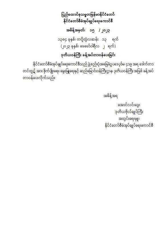 ဝန်ကြီးဌာန ကြေညာချက်များ