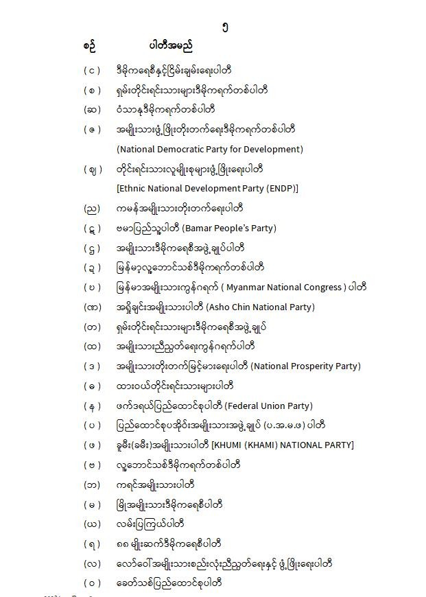 နိုင်ငံရေးပါတီများတည်ထောင်ခွင့်၊ မှတ်ပုံတင်ခွင့်လျှောက်ထားခြင်းနှင့် ပါတီဖျက်သိမ်းခြင်းတို့နှင့်စပ်လျဉ်း၍ ကြေညာခြင်း 03/28/2023