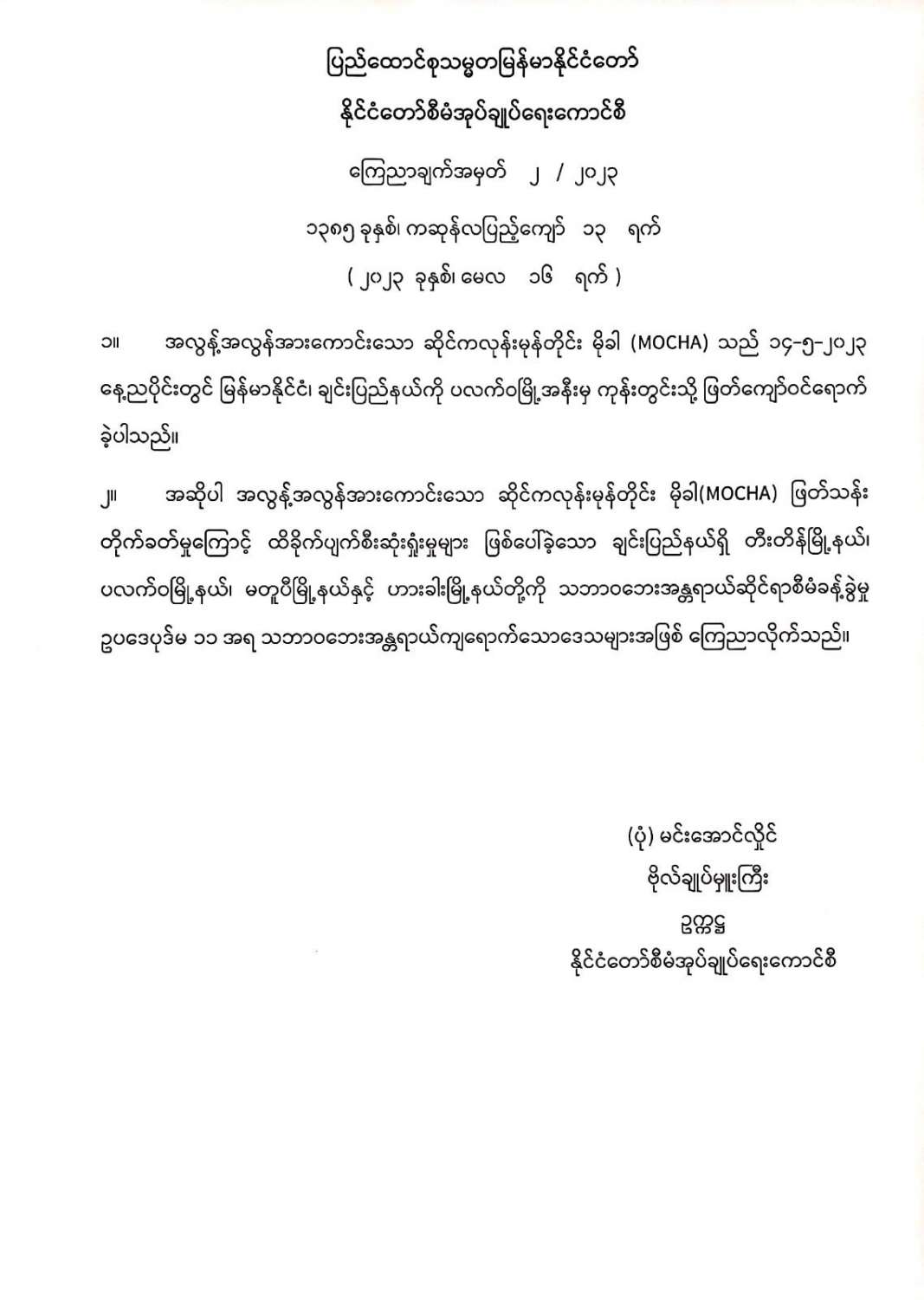 ဝန်ကြီးဌာန ကြေညာချက်များ