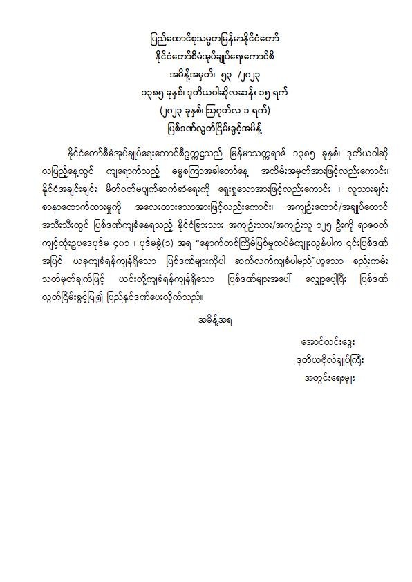 အမိန့်အမှတ်၊ ၅၃ /၂၀၂၃