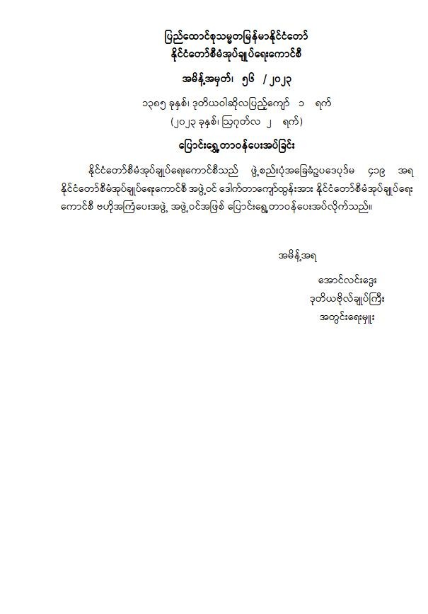 ပြည်ထောင်စုသမ္မတမြန်မာနိုင်ငံတော် နိုင်ငံတော်စီမံအုပ်ချုပ်ရေးကောင်စီ အမိန့်အမှတ်၊ ၅၆ / ၂၀၂၃ ၁၃၈၅ ခုနှစ်၊ ဒုတိယဝါဆိုလပြည့်ကျော် ၁ ရက် (၂၀၂၃ ခုနှစ်၊ ဩဂုတ်လ ၂ ရက်) ပြောင်းရွှေ့တာဝန်ပေးအပ်ခြင်း 08/02/2023