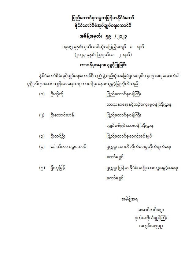 ပြည်ထောင်စုသမ္မတမြန်မာနိုင်ငံတော် နိုင်ငံတော်စီမံအုပ်ချုပ်ရေးကောင်စီ အမိန့်အမှတ်၊ ၅၉ / ၂၀၂၃ ၁၃၈၅ ခုနှစ်၊ ဒုတိယဝါဆိုလပြည့်ကျော် ၁ ရက် (၂၀၂၃ ခုနှစ်၊ ဩဂုတ်လ ၂ ရက်) တာဝန်မှအနားယူခွင့်ပြုခြင်း 08/02/2023