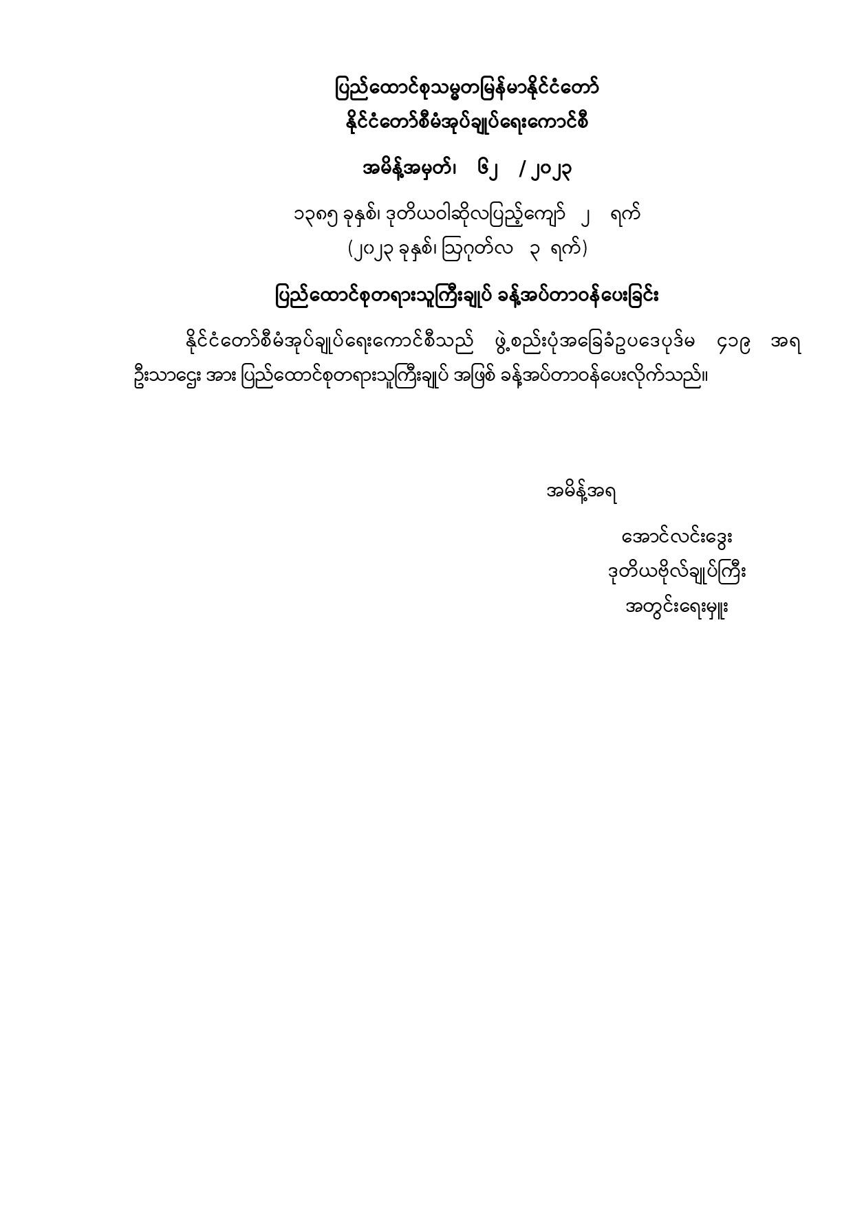 အမိန့်အမှတ်၊ ၆၂ / ၂၀၂၃