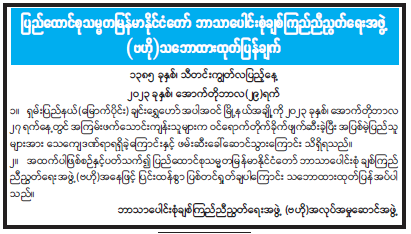 ပြည်ထောင်စုသမ္မတမြန်မာနိုင်ငံတော် ဘာသာပေါင်းစုံချစ်ကြည်ညီညွတ်ရေးအဖွဲ့(ဗဟို) သဘောထားထုတ်ပြန်ချက်