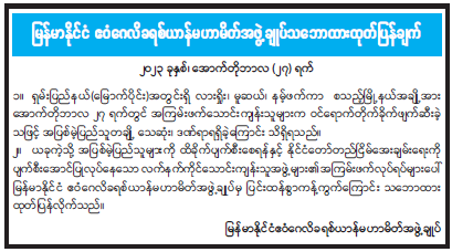 မြန်မာနိုင်ငံ ဧဝံဂေလိ ခရစ်ယာန်မဟာမိတ်အဖွဲ့ချုပ် သဘောထားထုတ်ပြန်ချက် 10/30/2023 မြန်မာနိုင်ငံ ဧဝံဂေလိ ခရစ်ယာန်မဟာမိတ်အဖွဲ့ချုပ် သဘောထားထုတ်ပြန်ချက်