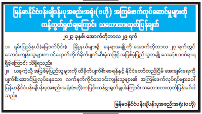 မြန်မာနိုင်ငံပန်းချီပန်းပုအစည်းအရုံး(ဗဟို) အကြမ်းဖက်လုပ်ဆောင်မှုများကို ကန့်ကွက်ရှုတ်ချကြောင်း သဘောထားထုတ်ပြန်ချက် 10/30/2023 မြန်မာနိုင်ငံပန်းချီပန်းပုအစည်းအရုံး(ဗဟို) အကြမ်းဖက်လုပ်ဆောင်မှုများကို ကန့်ကွက်ရှုတ်ချကြောင်း သဘောထားထုတ်ပြန်ချက်