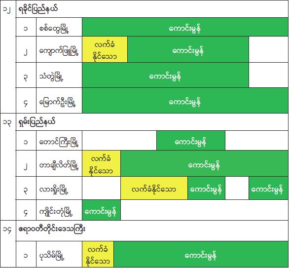 မြန်မာနိုင်ငံတစ်ဝန်းရှိ ဝန်းကျင်လေထုအရည်အသွေးအခြေအနေအား လေ့လာဆန်းစစ်နိုင်ရန်အတွက် ပတ်ဝန်းကျင်ထိန်းသိမ်းရေးဦးစီးဌာနအနေဖြင့် ပြည်ထောင်စုနယ်မြေ/ တိုင်းဒေသကြီး/ ပြည်နယ်များရှိ သတ်မှတ် Sampling Point နေရာများတွင် ဝန်းကျင်လေထုအရည်အသွေးကို Environmental Perimeter Air Station (EPAS) - Haz-Scanner ၊ Air Quality Monitoring Station (AQM-65) ၊ Scentroid (SL– 50 Scential) ၊ Aeroqual (Series – 500 Portable Air Quality Monitor)၊ AQMesh (Dust Analyzer - 1941150)၊ (Gas Analyzer - 1940150)၊ Portable Beta Attenuation Mass Monitor (BAM 1022)၊ Air Quality Monitoring Station (AQMS) နှင့် Continuous Particulate Monitor များအသုံးပြု၍ Particulate Matter 2.5 (PM2.5) ၊ Particulate Matter 10 (PM10) ၊ Sulphur Dioxide (SO2) ၊ Nitrogen Dioxide (NO2)၊ Ozone (O3) နှင့် Carbon Monoxide (CO) စသည့် အဓိက Parameter များကို ပုံမှန်တိုင်းတာပြီး လေ့လာ ဆန်းစစ်လျက်ရှိပါသည်။