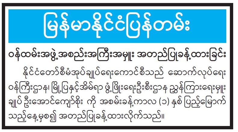 ဝန်ကြီးဌာန ကြေညာချက်များ