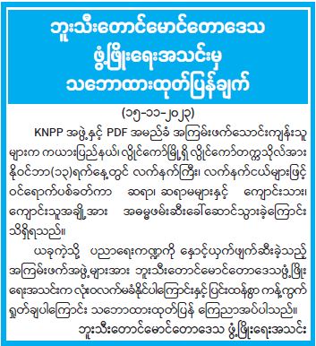 ဘူးသီးတောင်မောင်တောဒေသဖွံ့ဖြိုးရေးအသင်း သဘောထားထုတ်ပြန်ချက်