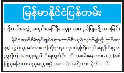 ဝန်ကြီးဌာန ကြေညာချက်များ