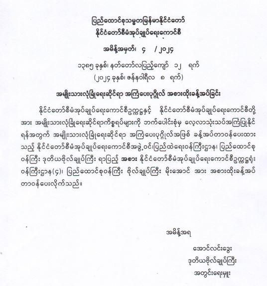 ဝန်ကြီးဌာန ကြေညာချက်များ