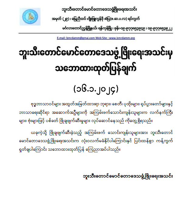 ဘူးသီးတောင်မောင်တောဒေသဖွံ့ဖြိုးရေးအသင်းမှ သဘောထားထုတ်ပြန်ချက်(၁၆-၁-၂၀၂၄)