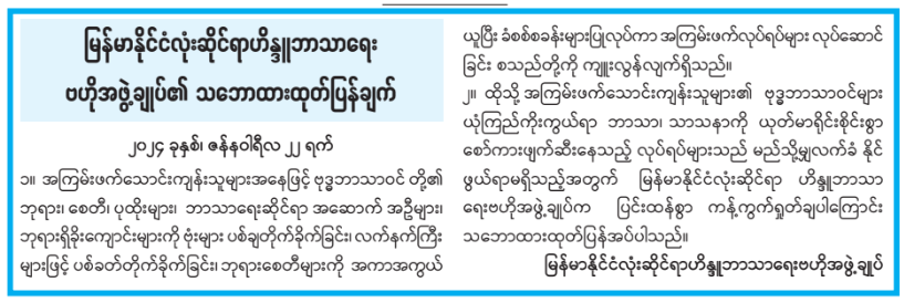 မြန်မာနိုင်ငံလုံးဆိုင်ရာဟိန္ဒူဘာသာရေးဗဟိုအဖွဲ့ချုပ်၏ သဘောထားထုတ်ပြန်ချက်