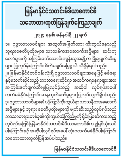 ၃။ ဗုဒ္ဓဘာသာဝင်များ၏ ယုံကြည်ကိုးကွယ်ရာ သာသနိကအဆောက် အဦများနှင့် ဘုရား စေတီပုထိုးများကို ဖျက်ဆီးသည့်လုပ်ရပ်သည် ဘာသာတရားတစ်ခု၏ ကိုးကွယ်ယုံကြည်မှုကို ရိုင်းပြစော်ကားသည့် လုပ်ရပ်အဖြစ် မြန်မာနိုင်ငံသတင်းမီဒီယာကောင်စီက ရှုမြင်သုံးသပ်ပါကြောင်းနှင့် အဆိုပါလုပ်ရပ်အပေါ် လုံးဝလက်မခံနိုင်ပါကြောင်း သဘောထားထုတ်ပြန်အပ်ပါသည်။