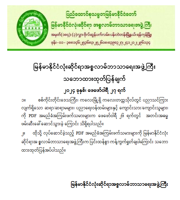 မြန်မာနိုင်ငံလုံးဆိုင်ရာ အစ္စလာမ်ဘာသာရေးအဖွဲ့ကြီး သဘောထားထုတ်ပြန်ချက်