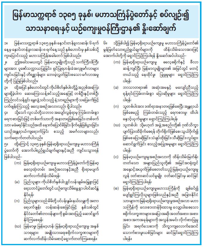 မြန်မာသက္ကရာဇ် ၁၃၈၅ ခုနှစ်၊ မဟာသင်္ကြန်ပွဲတော်နှင့် စပ်လျဉ်း၍ သာသနာရေးနှင့် ယဉ်ကျေးမှုဝန်ကြီးဌာန၏ နှိုးဆော်ချက် 04/02/2024