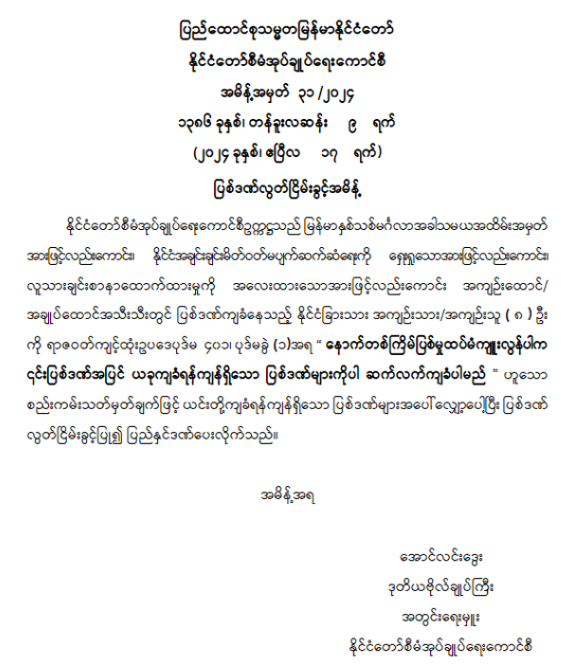 ဝန်ကြီးဌာန ကြေညာချက်များ