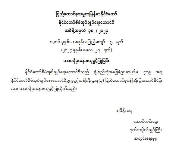 ဝန်ကြီးဌာန ကြေညာချက်များ