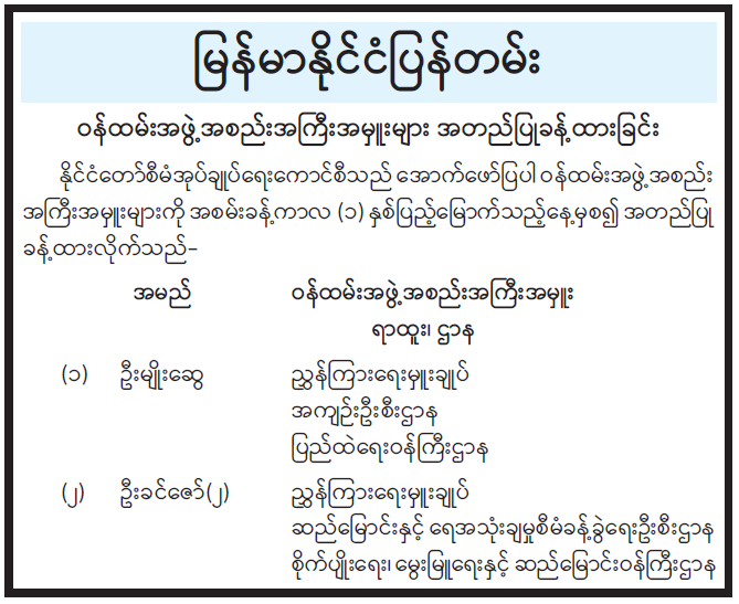 ဝန်ကြီးဌာန ကြေညာချက်များ
