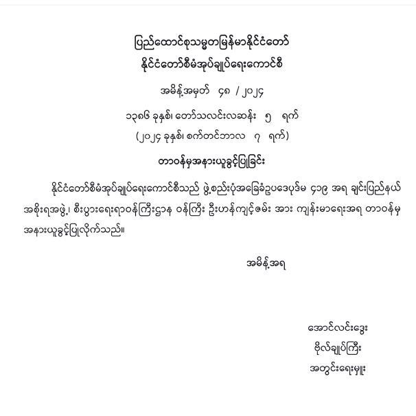 ဝန်ကြီးဌာန ကြေညာချက်များ