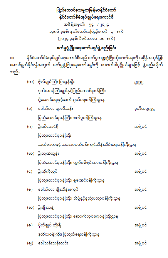 ဝန်ကြီးဌာန ကြေညာချက်များ