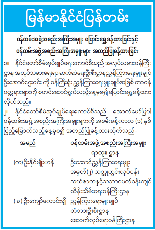 ဝန်ထမ်းအဖွဲ့အစည်းအကြီးအမှူး ပြောင်းရွှေ့ခန့်ထားခြင်းနှင့် ဝန်ထမ်းအဖွဲ့အစည်းအကြီးအမှူးများ အတည်ပြုခန့်ထားခြင်း 05/14/2025