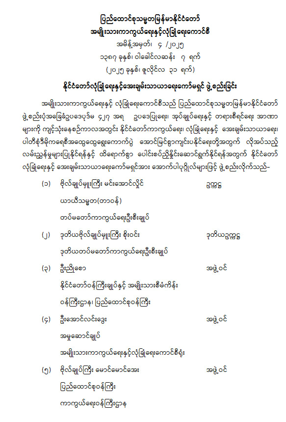 နိုင်ငံတော်လုံခြုံရေးနှင့် အေးချမ်းသာယာရေးကော်မရှင် ဖွဲ့စည်းခြင်း