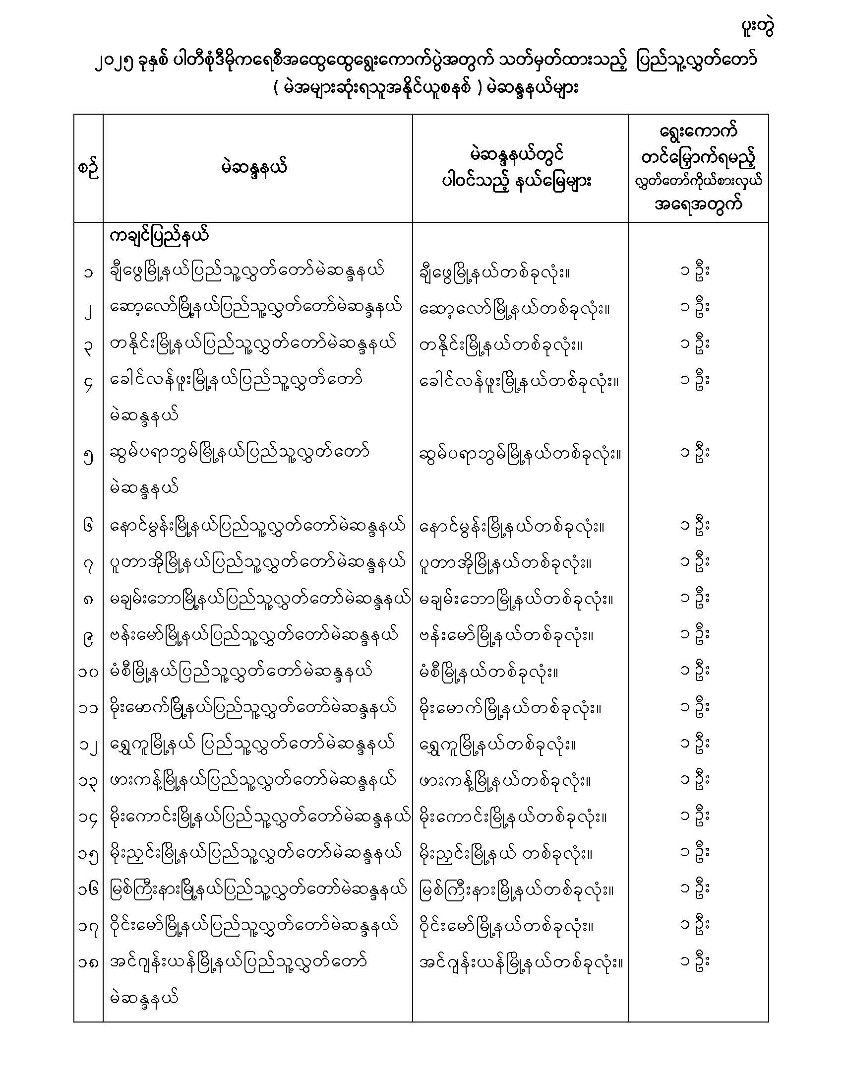 ပြည်သူ့လွှတ်တော်မဲဆန္ဒနယ်များ သတ်မှတ်ကြေညာခြင်း