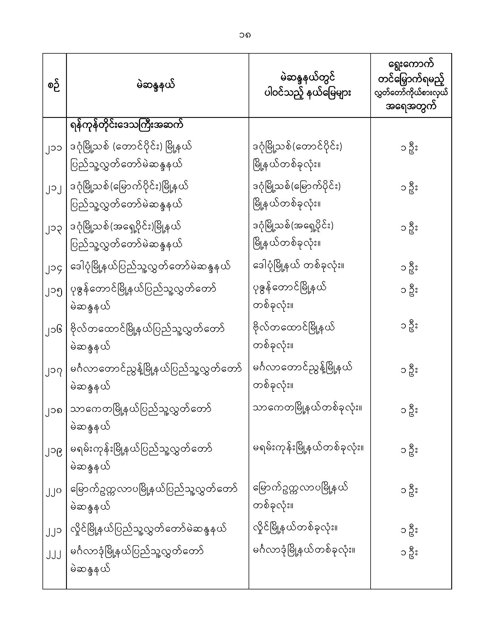 ဝန်ကြီးဌာန ကြေညာချက်များ