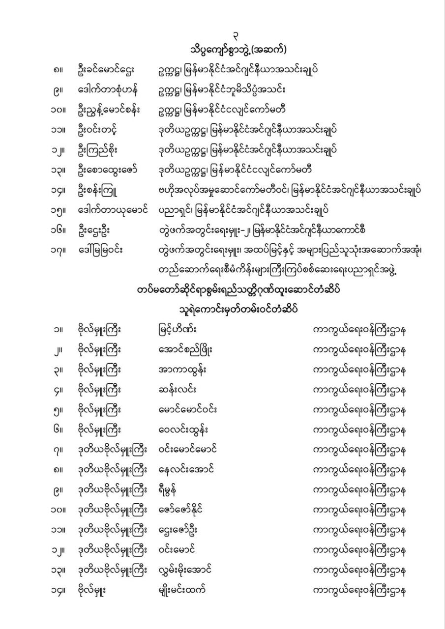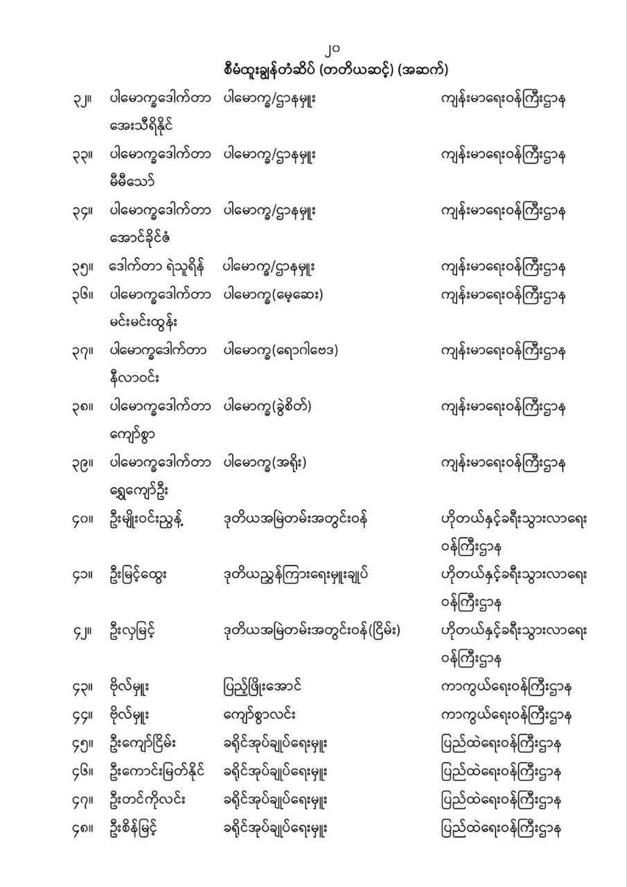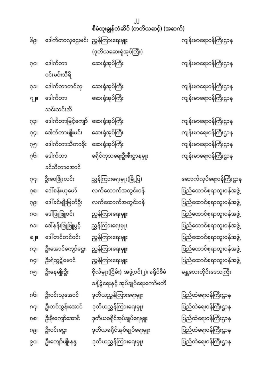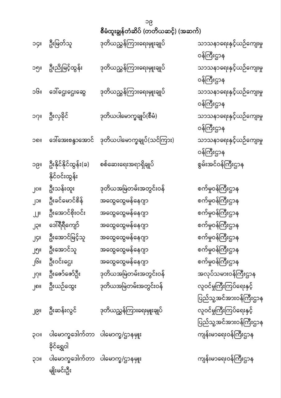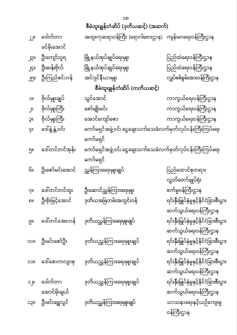 ဝန်ကြီးဌာန ကြေညာချက်များ