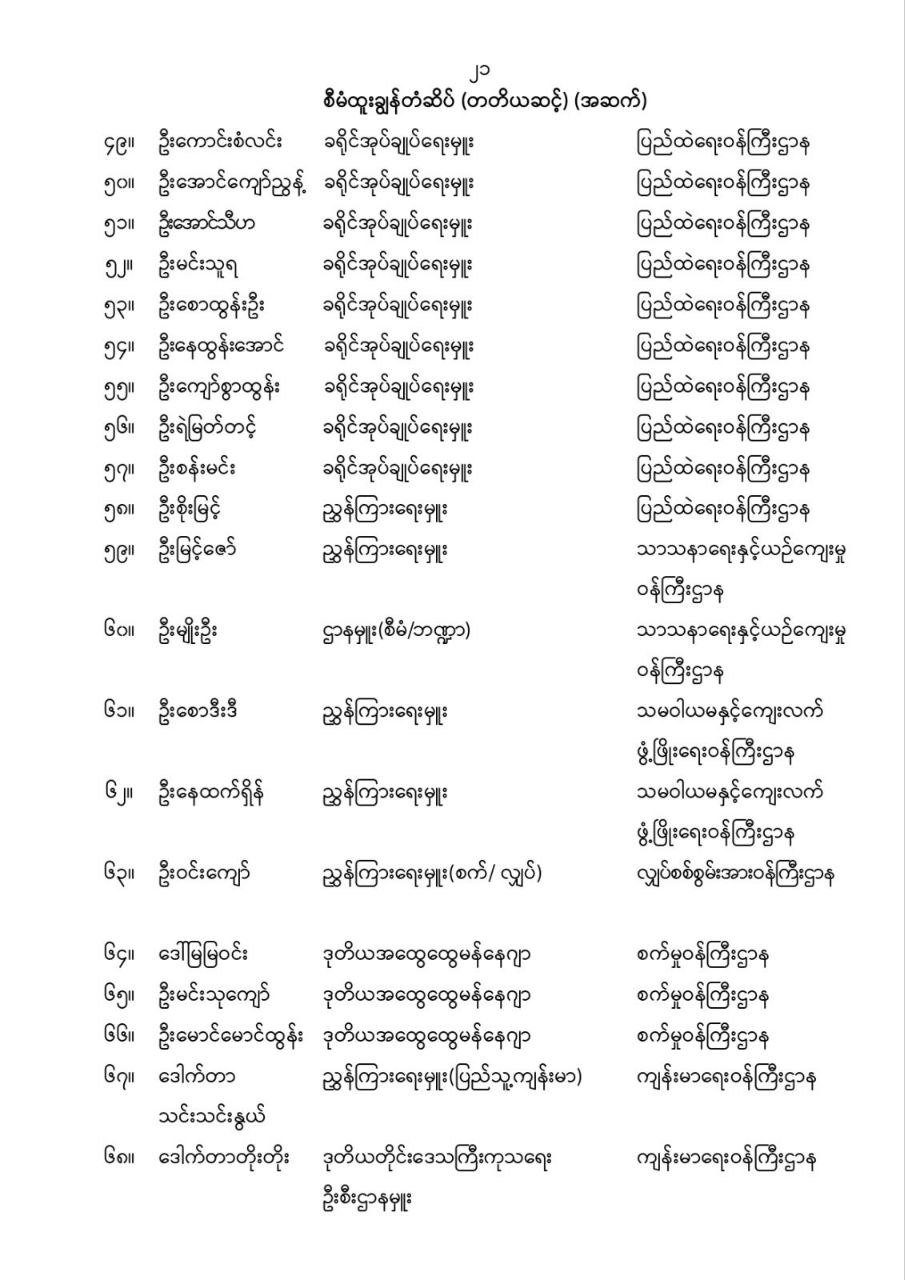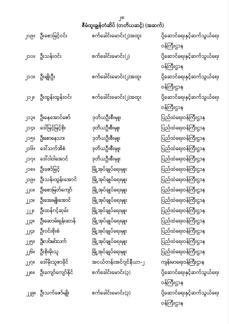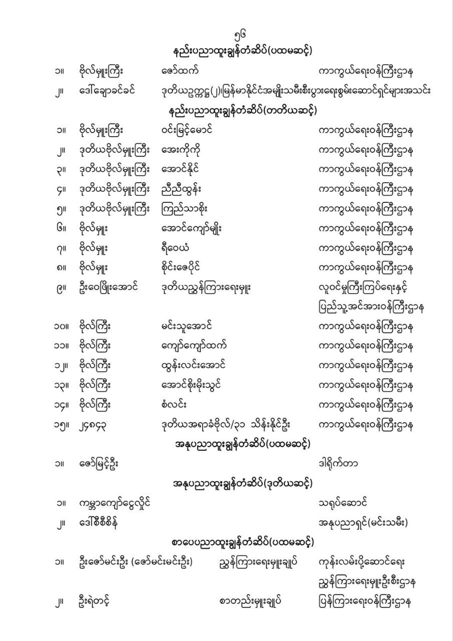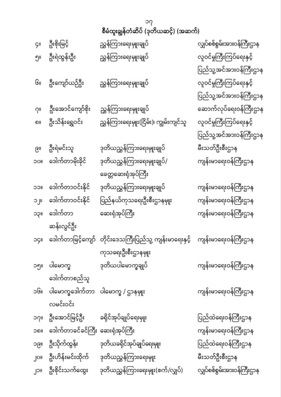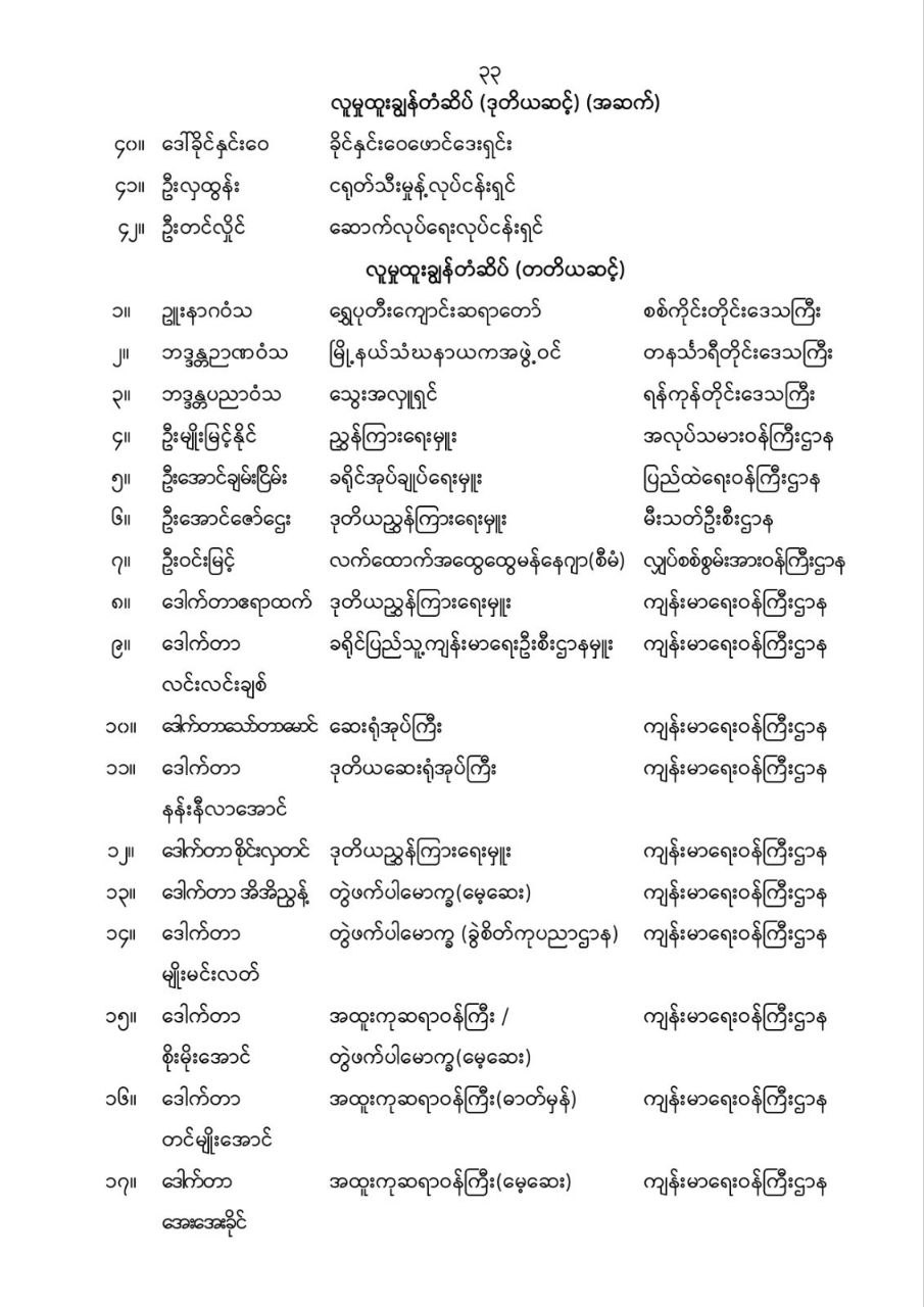 ဝန်ကြီးဌာန ကြေညာချက်များ