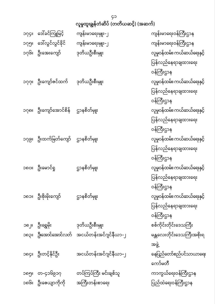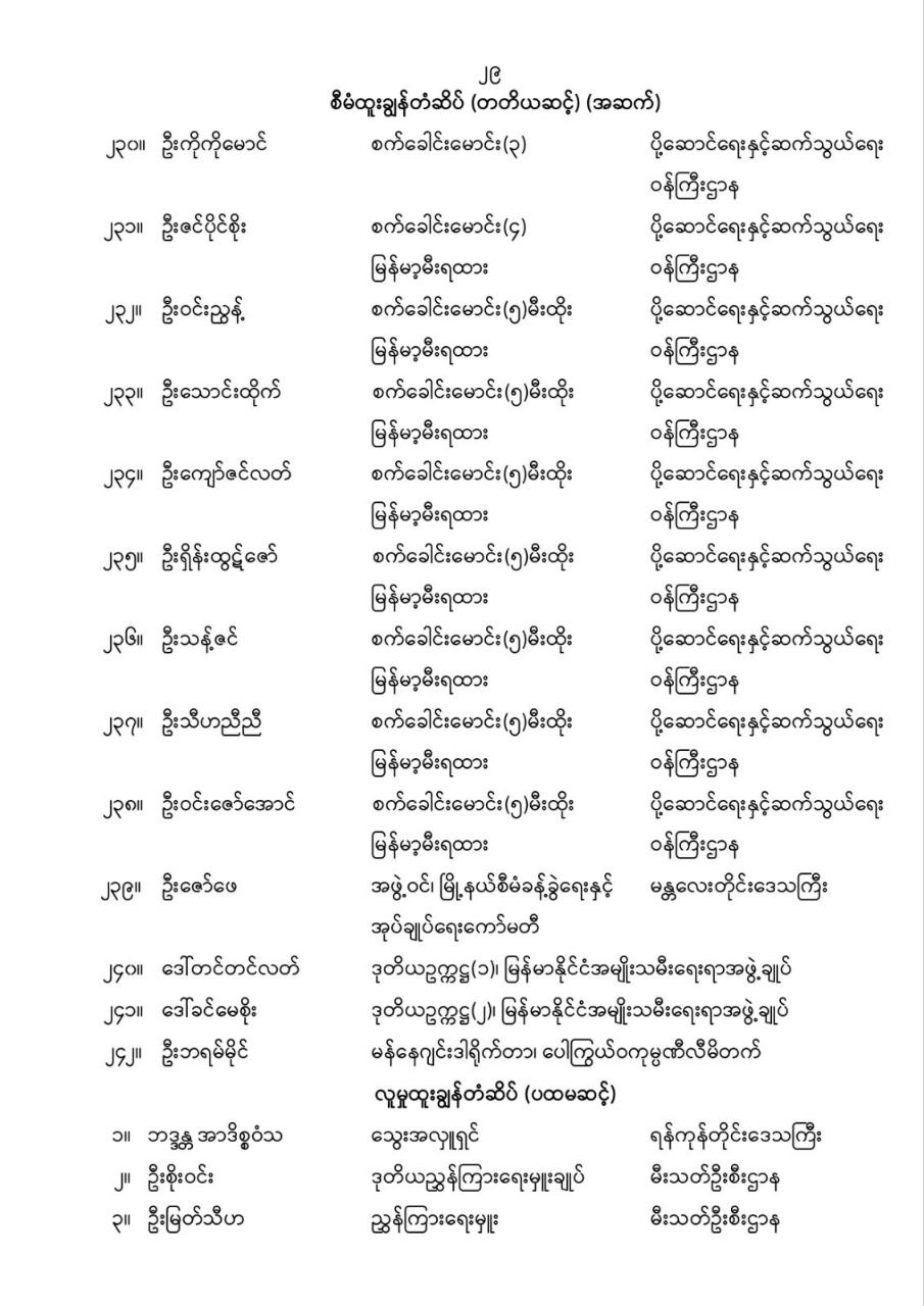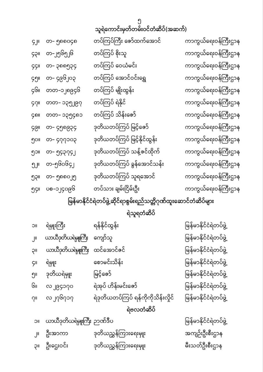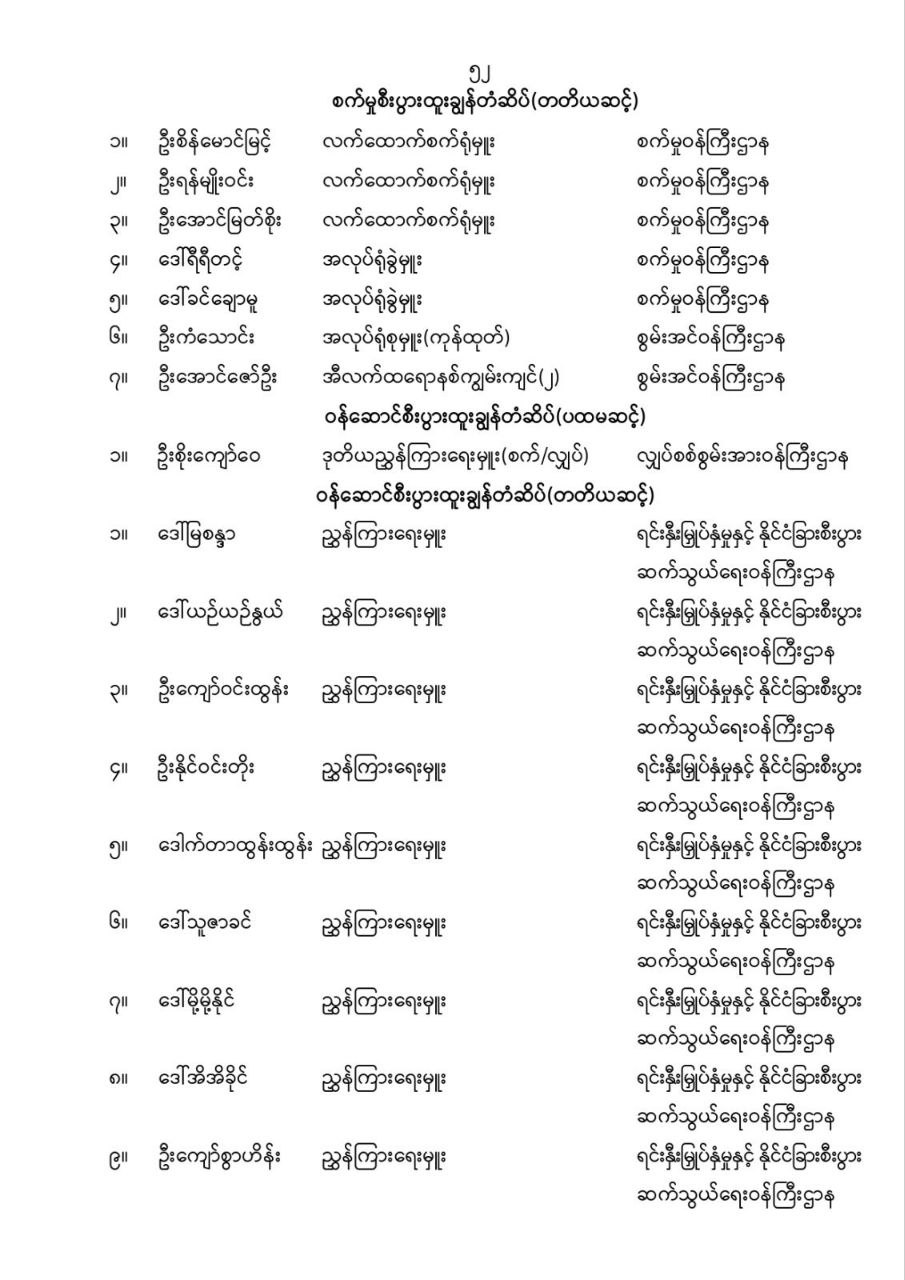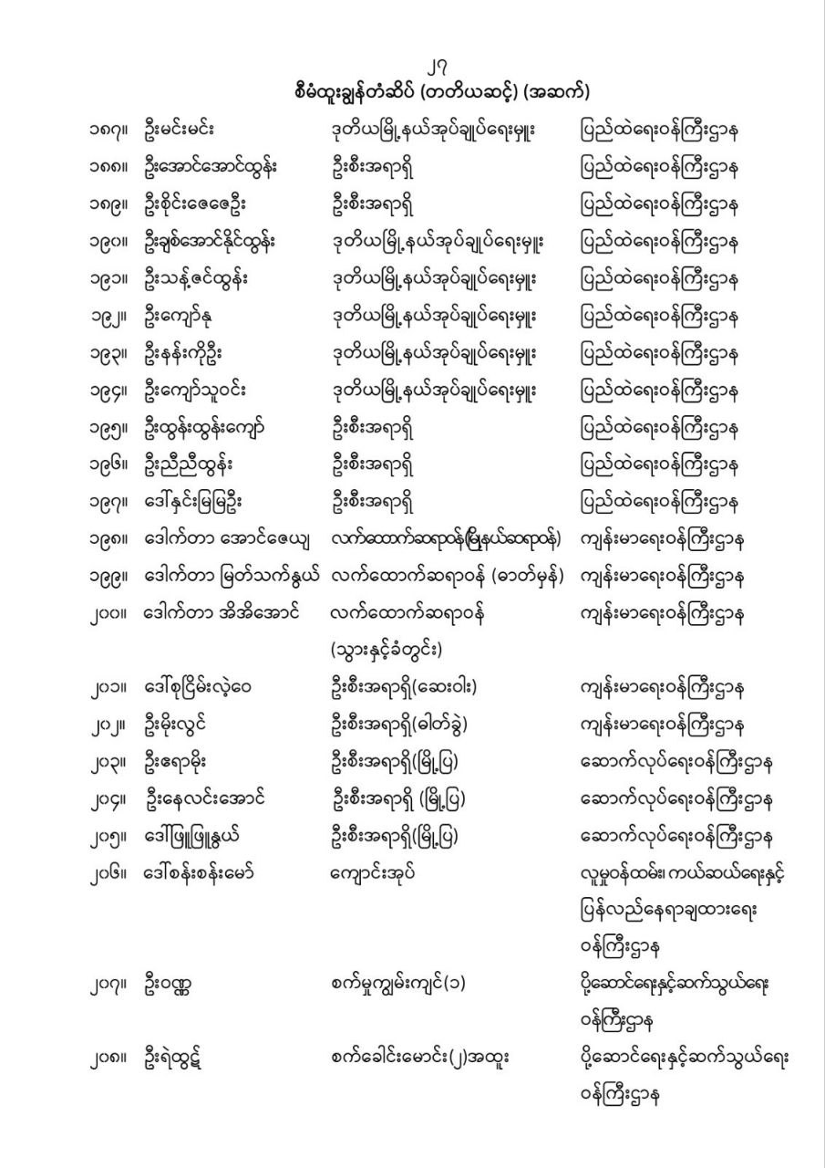 ဝန်ကြီးဌာန ကြေညာချက်များ