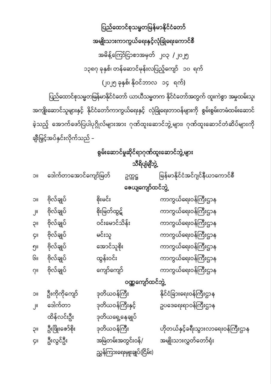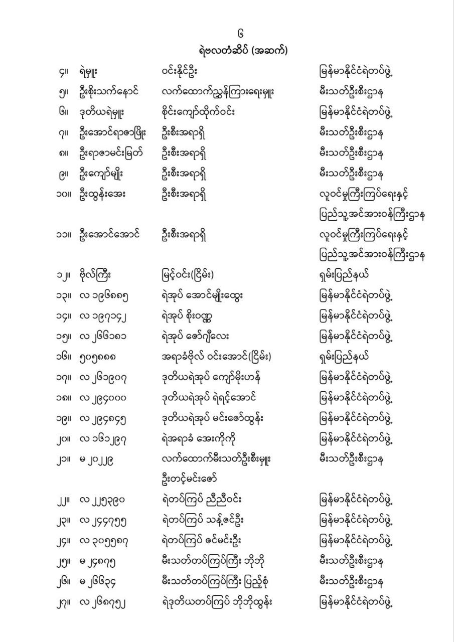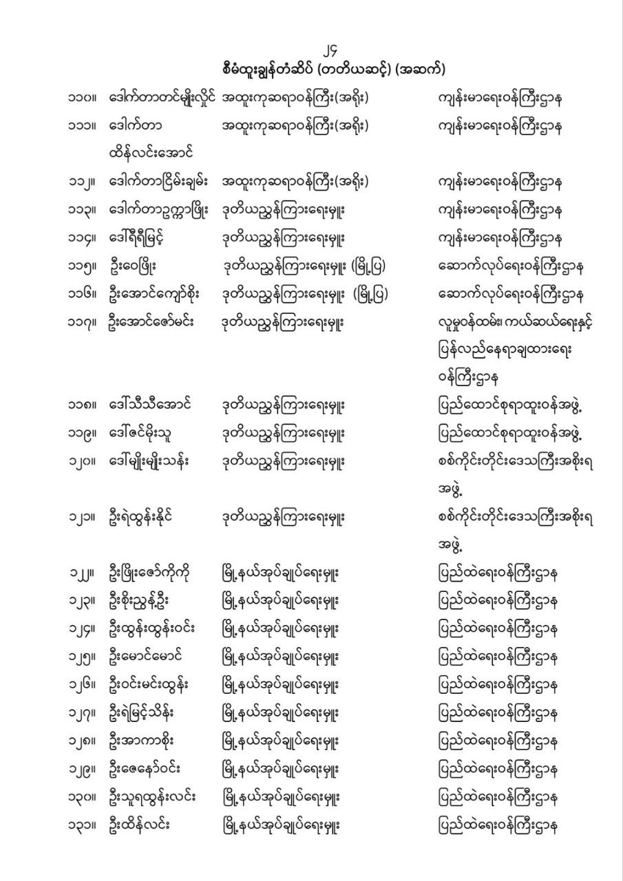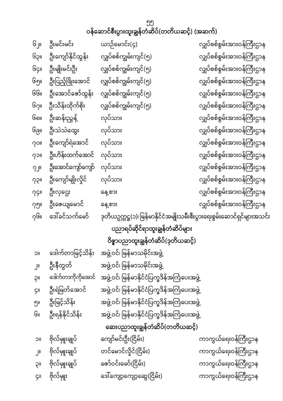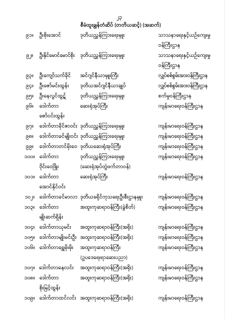 ဝန်ကြီးဌာန ကြေညာချက်များ