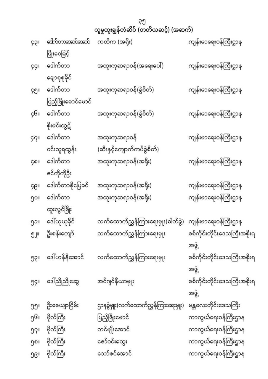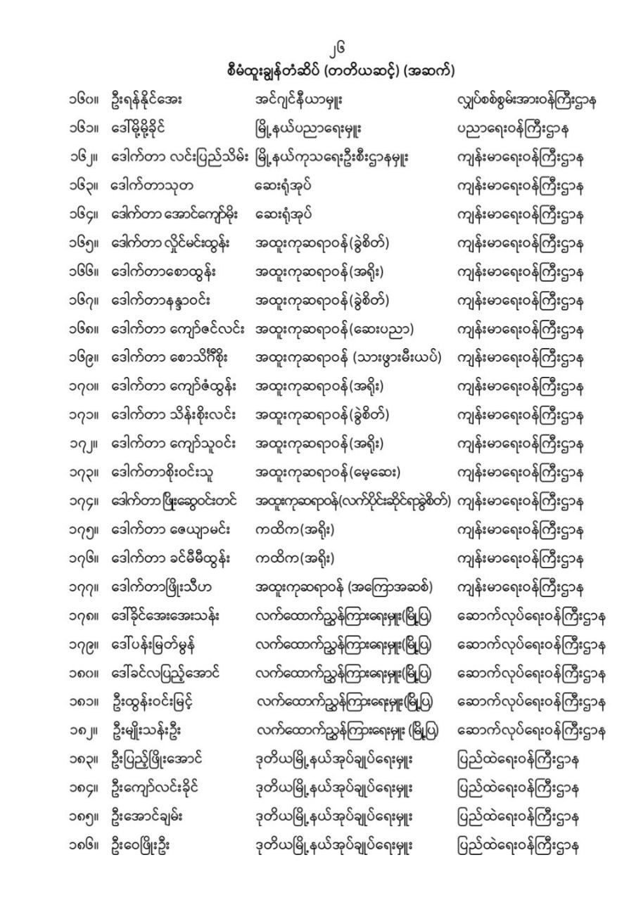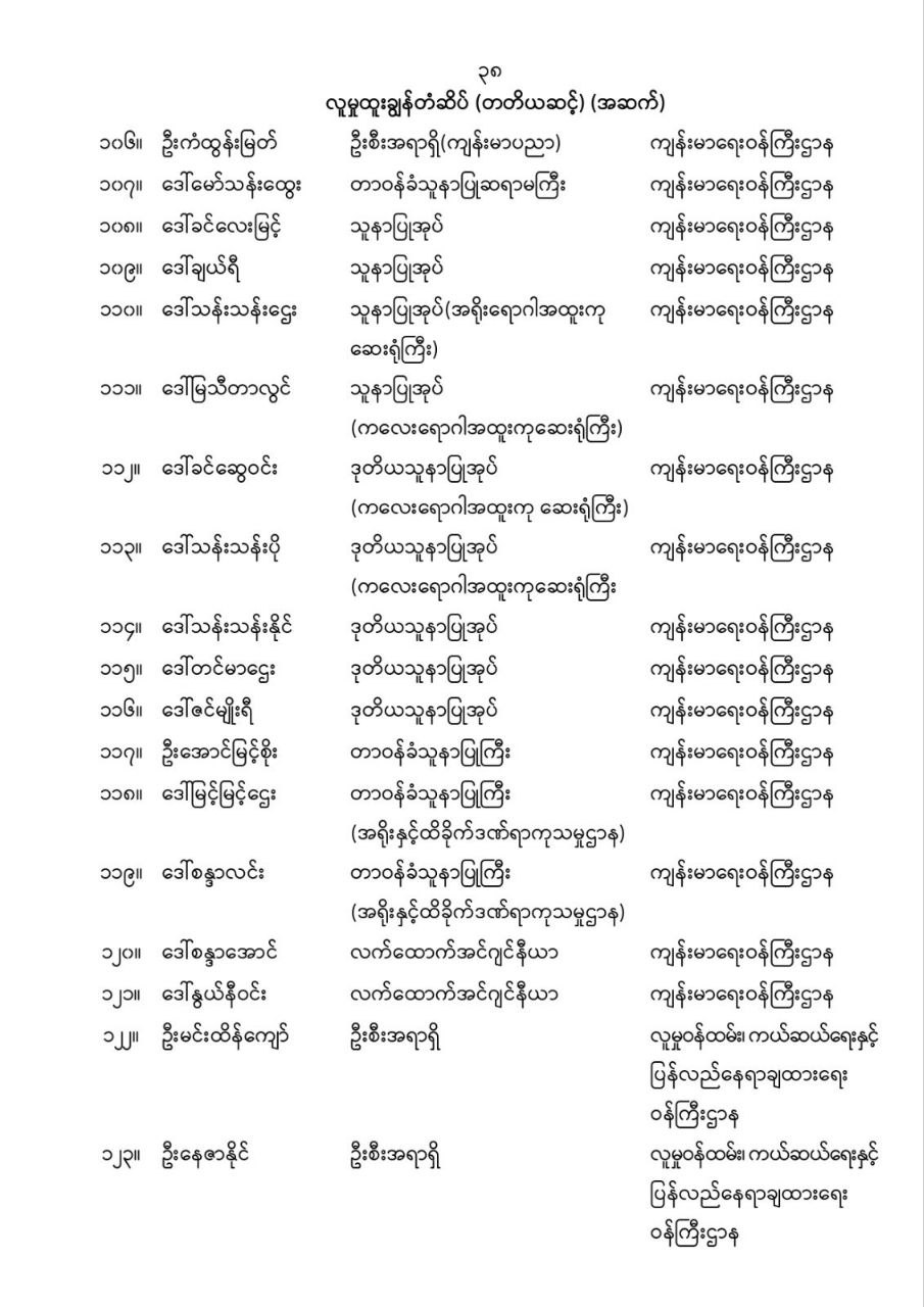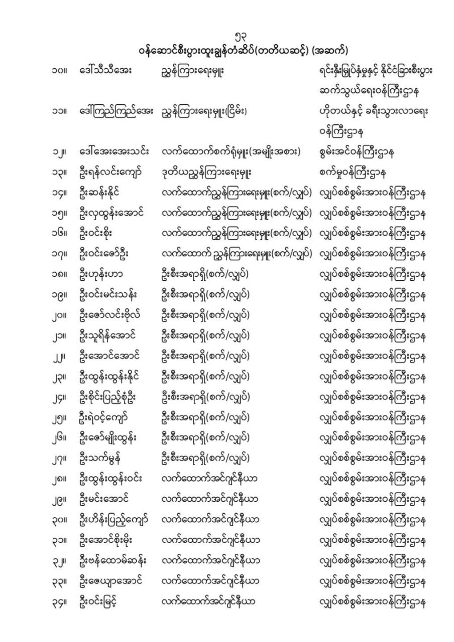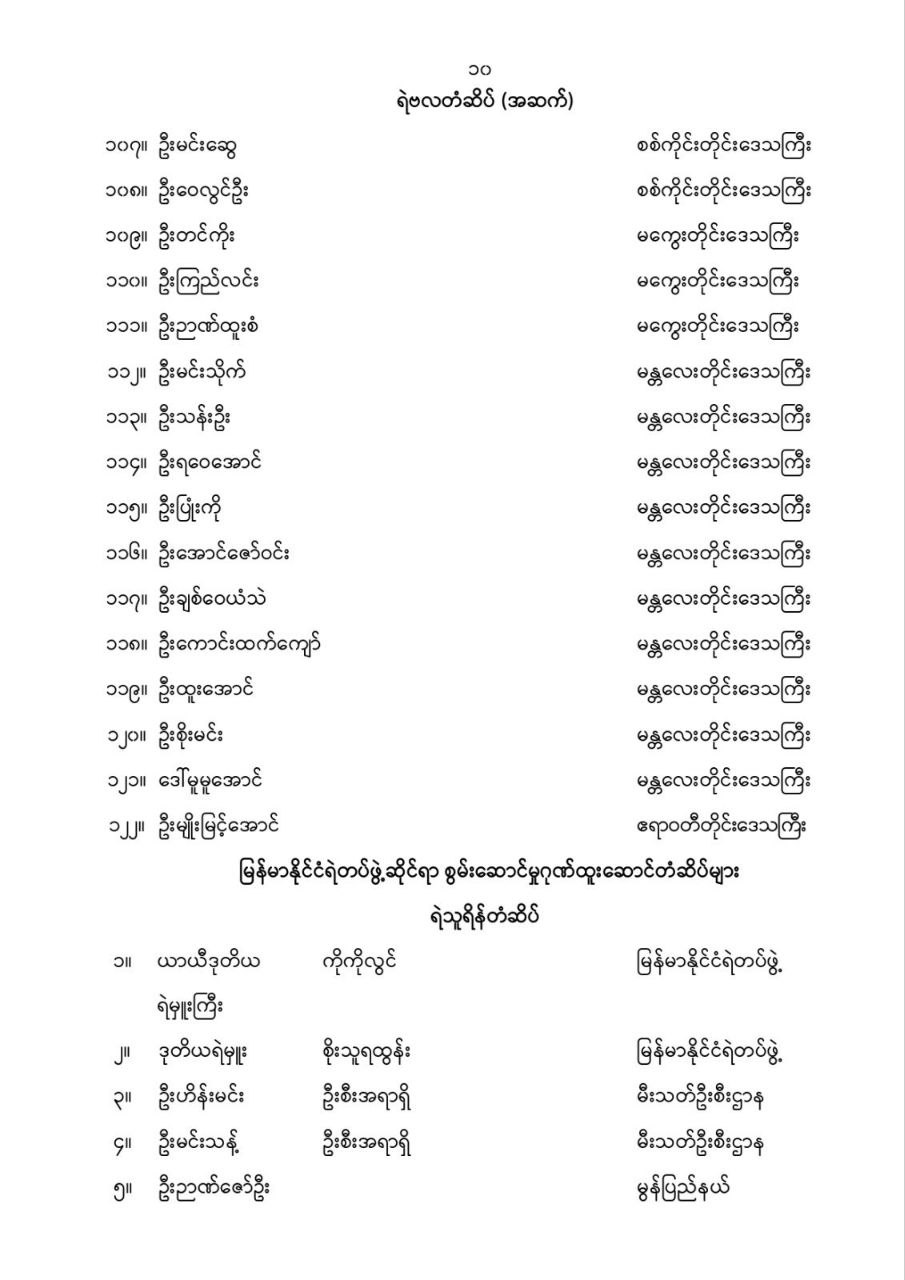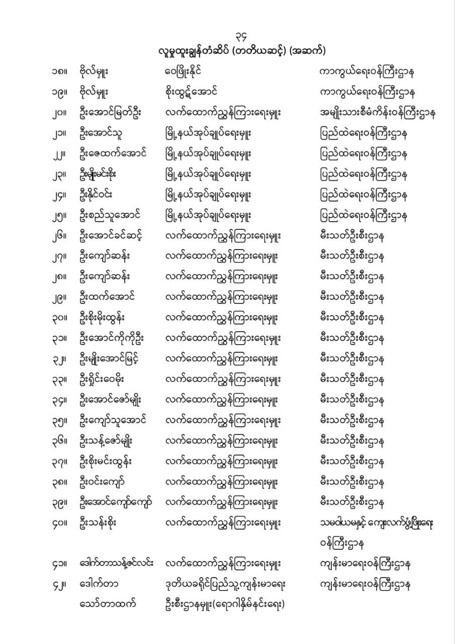 ဝန်ကြီးဌာန ကြေညာချက်များ