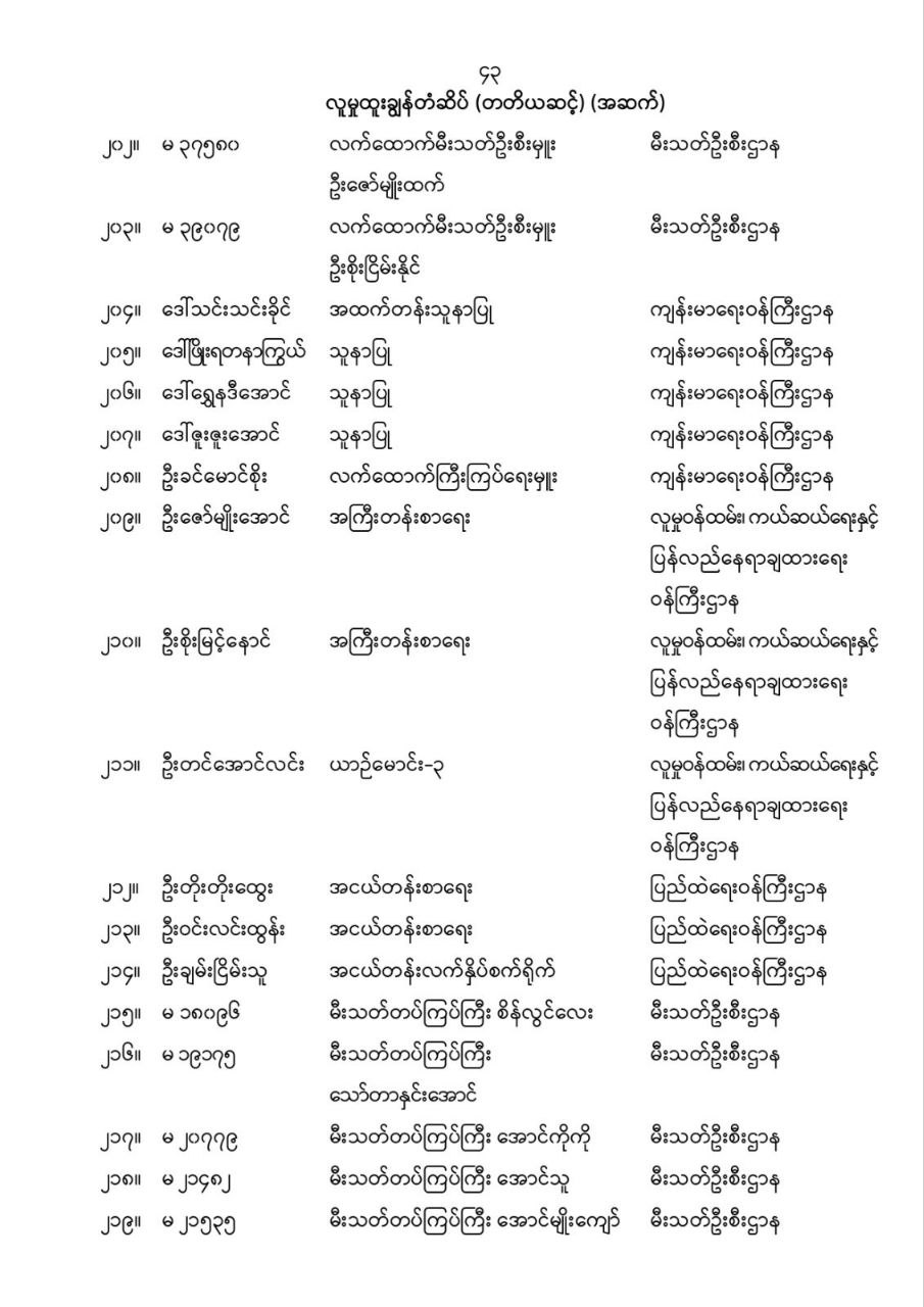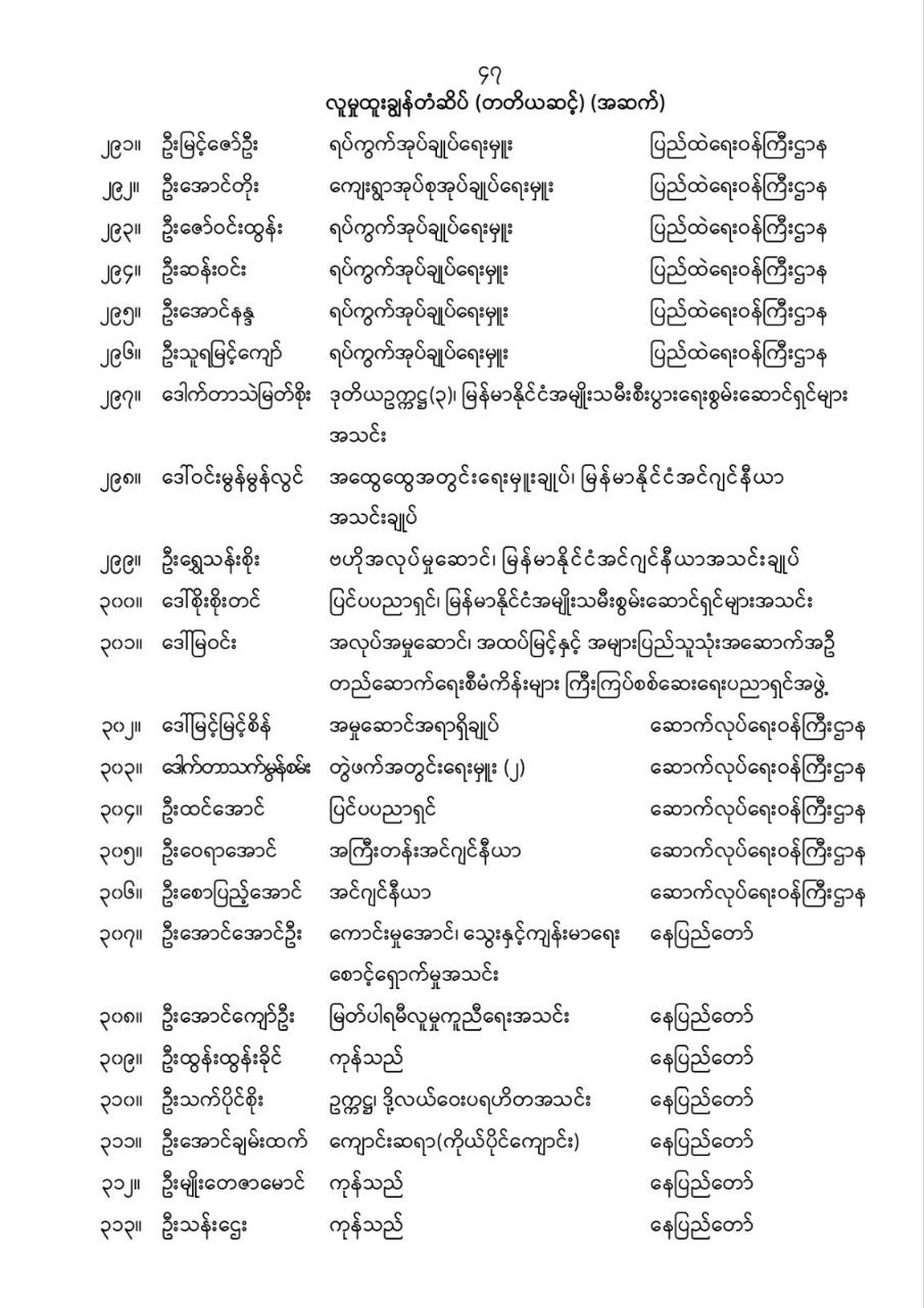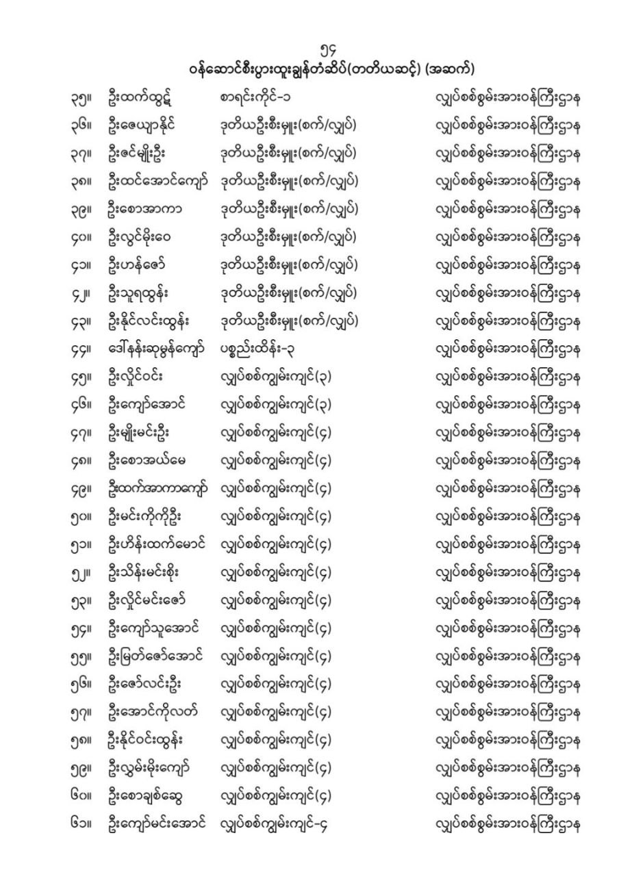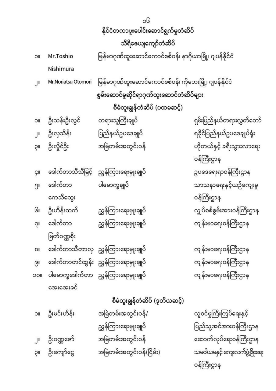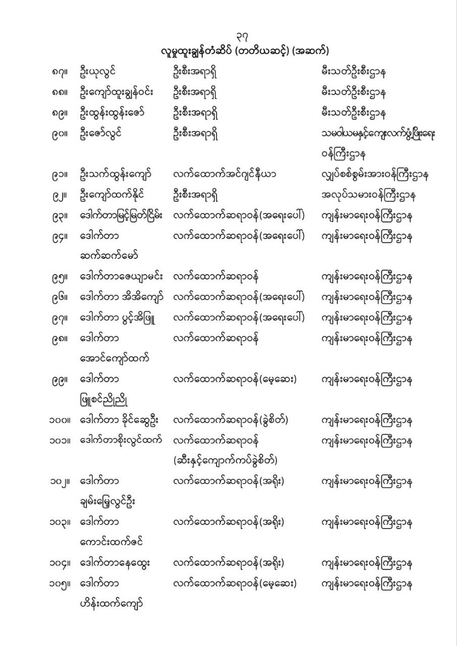 ဝန်ကြီးဌာန ကြေညာချက်များ