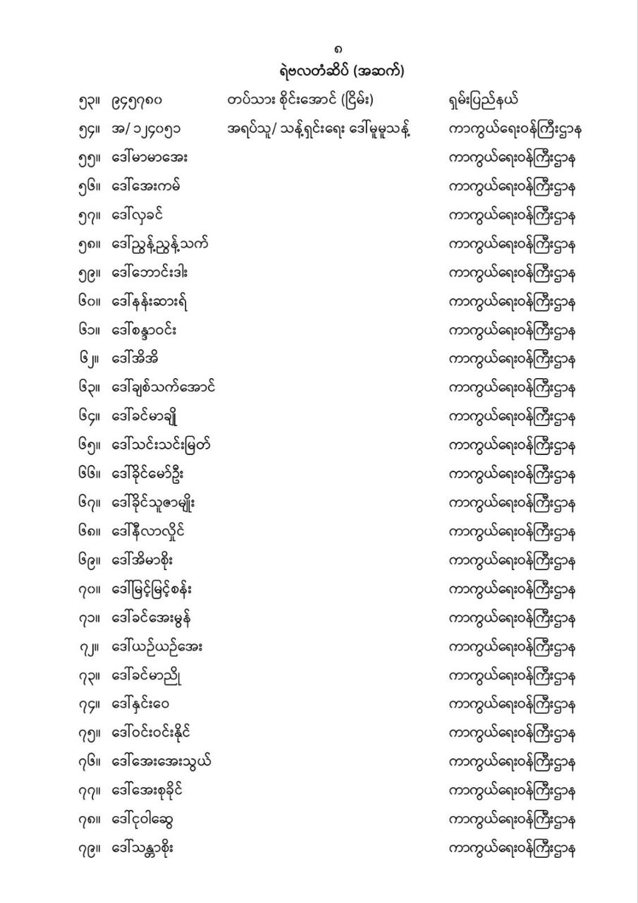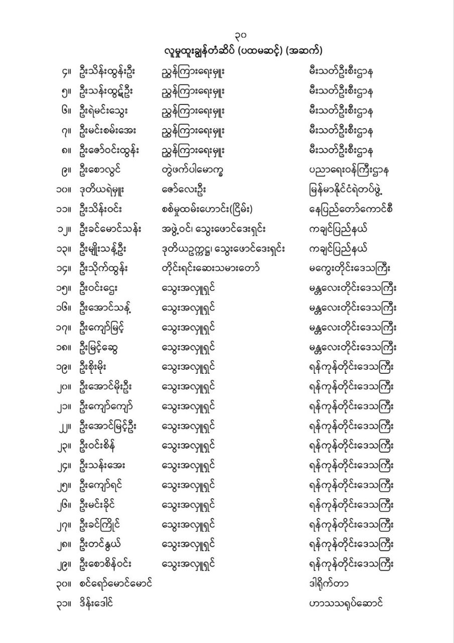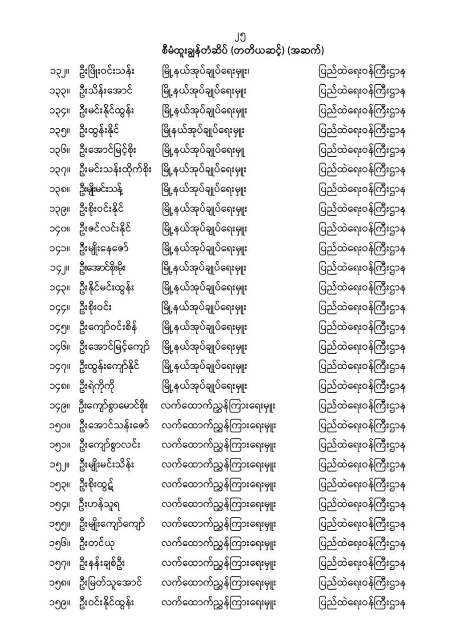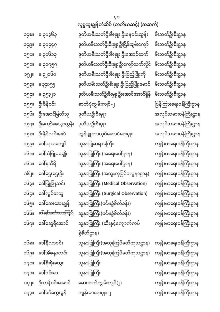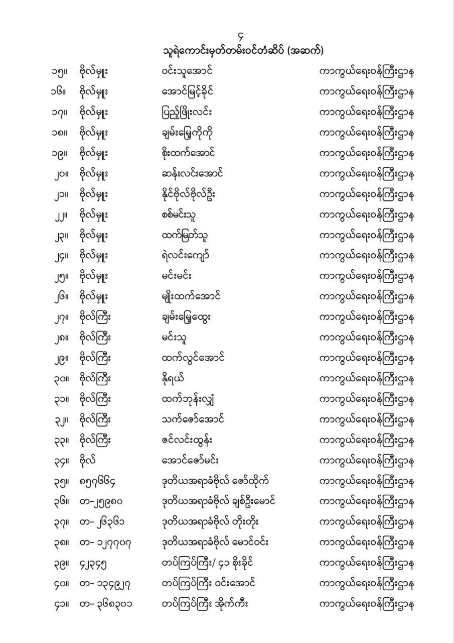 ဝန်ကြီးဌာန ကြေညာချက်များ