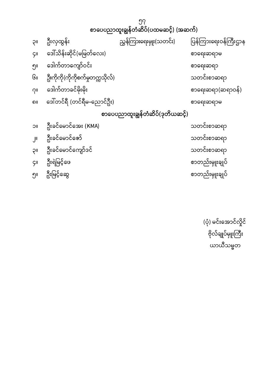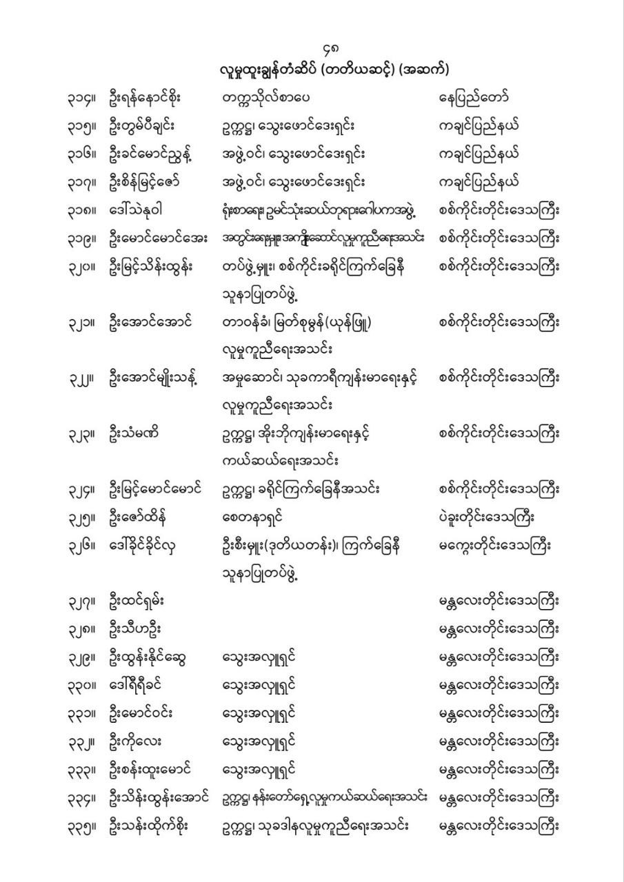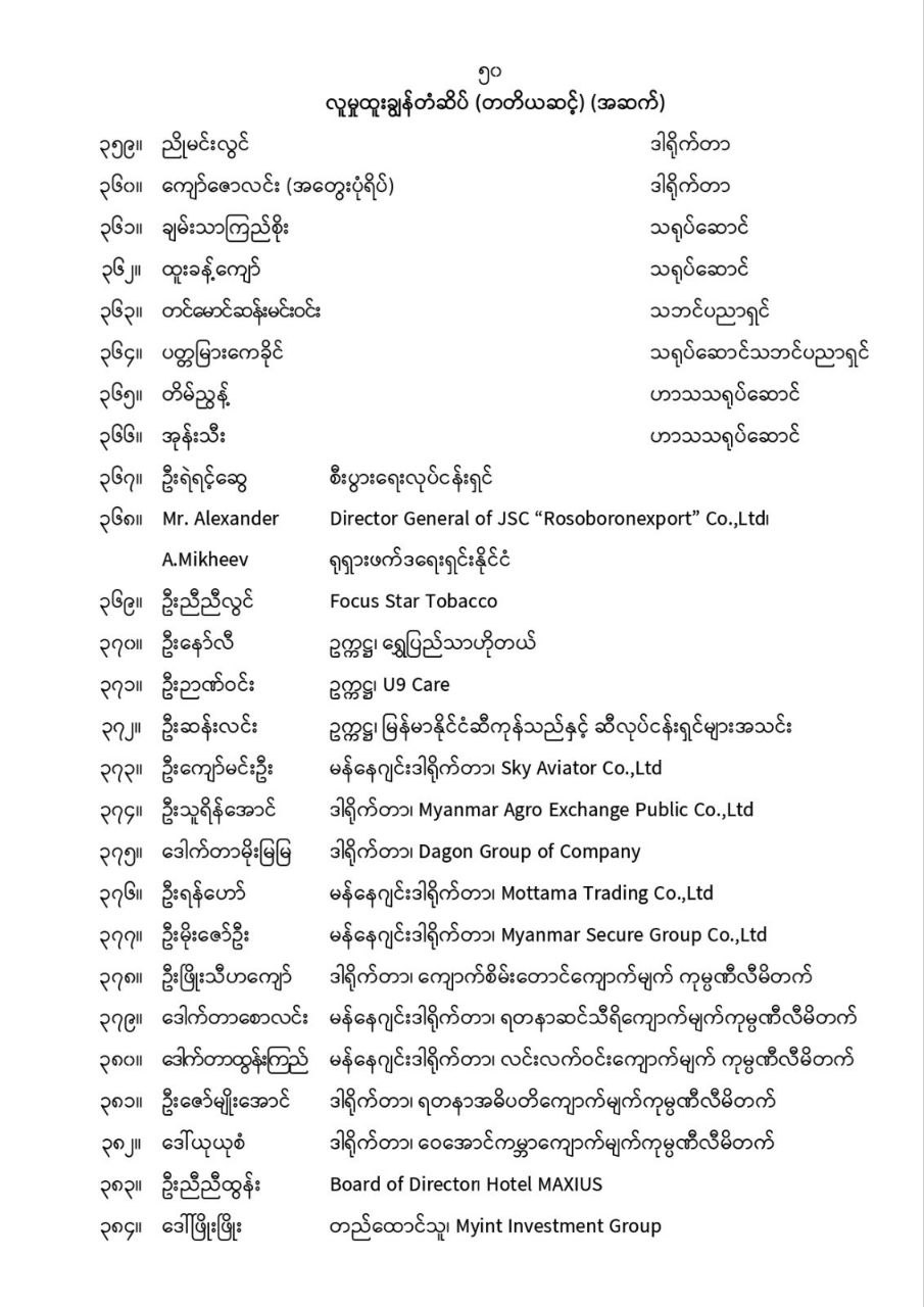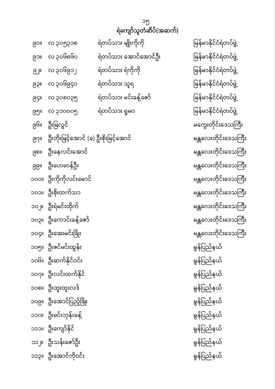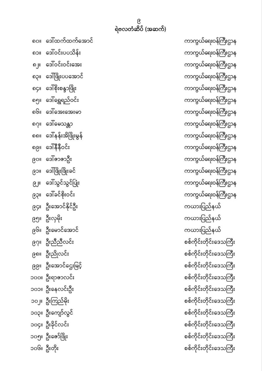 ဝန်ကြီးဌာန ကြေညာချက်များ