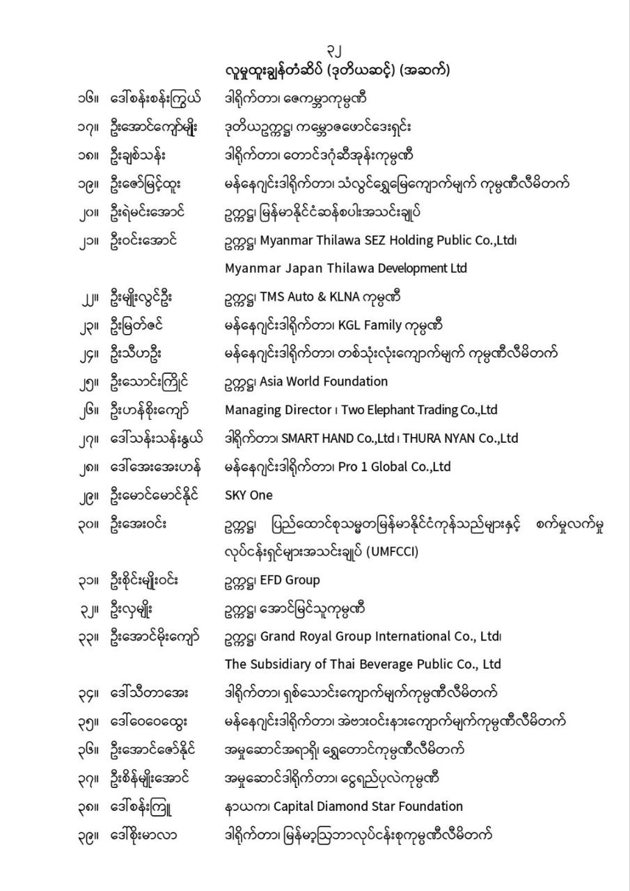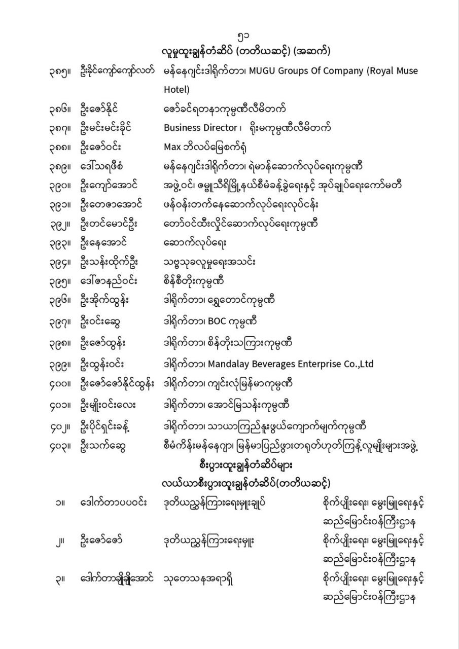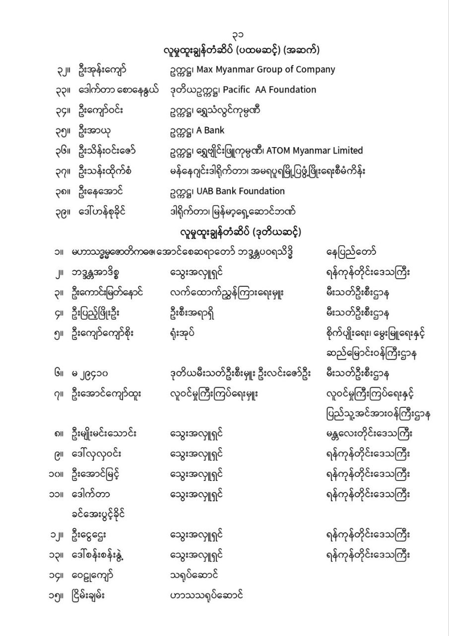 ဦးစီးဌာနနှင့် လုပ်ငန်းများ၏ ကြေညာချက်များ